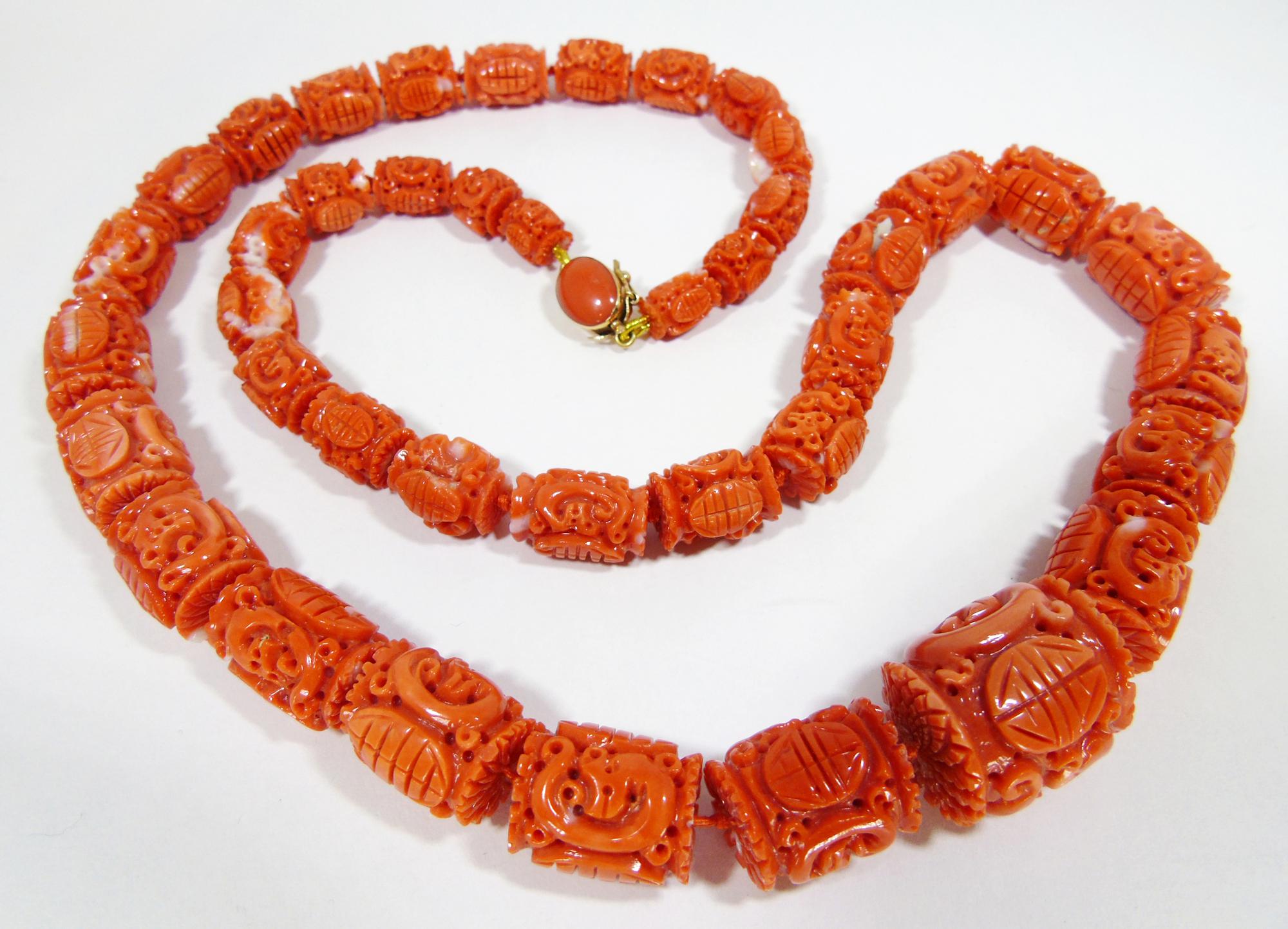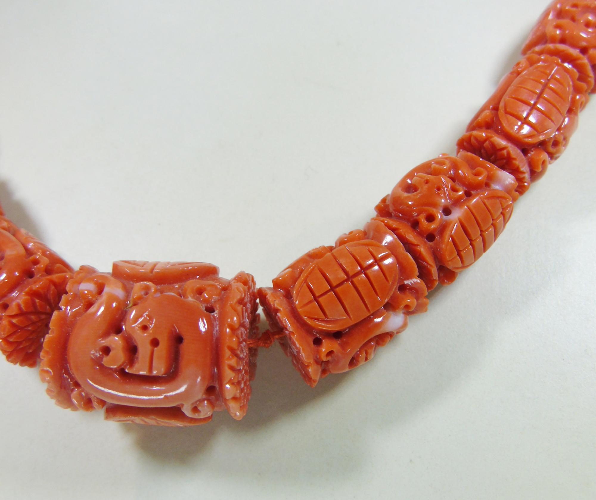 PARURE IN CORALLO MOMO GIAPPONESE collana a un filo con cilindri di corallo...