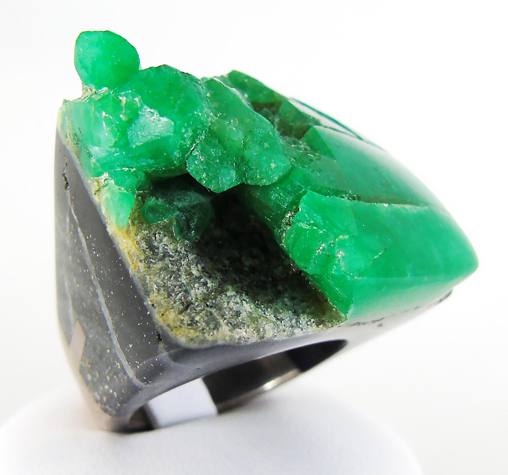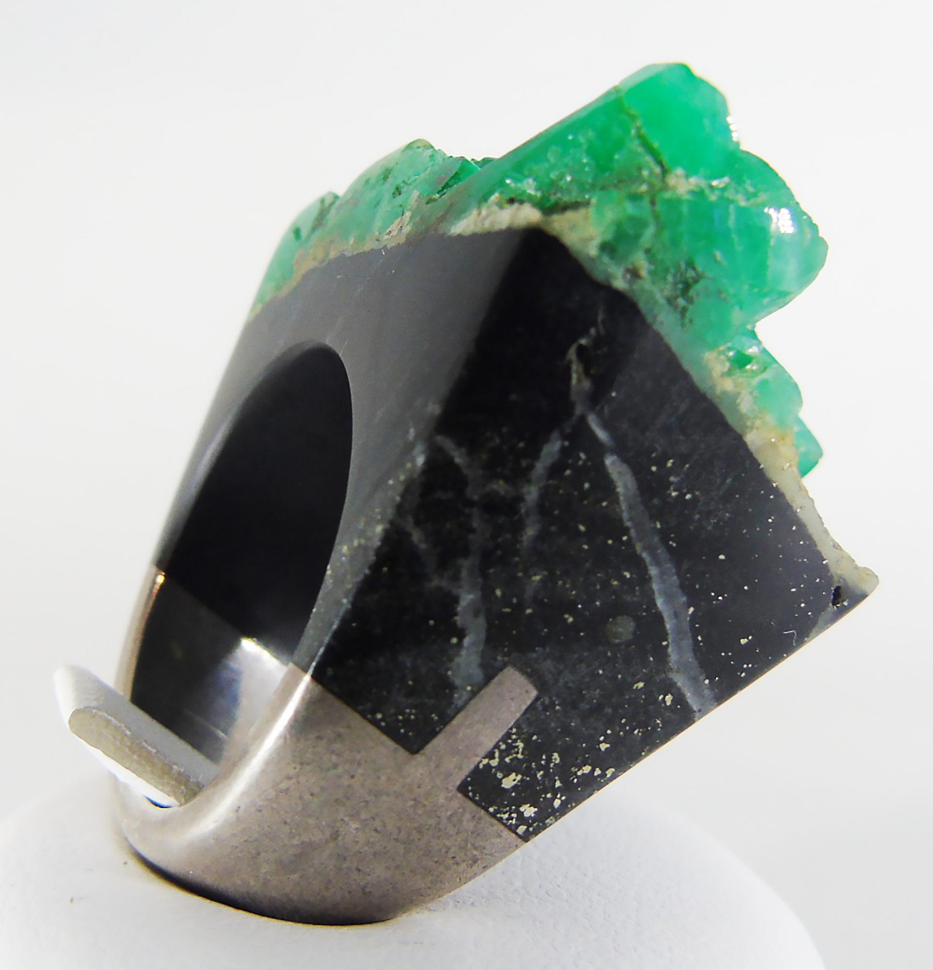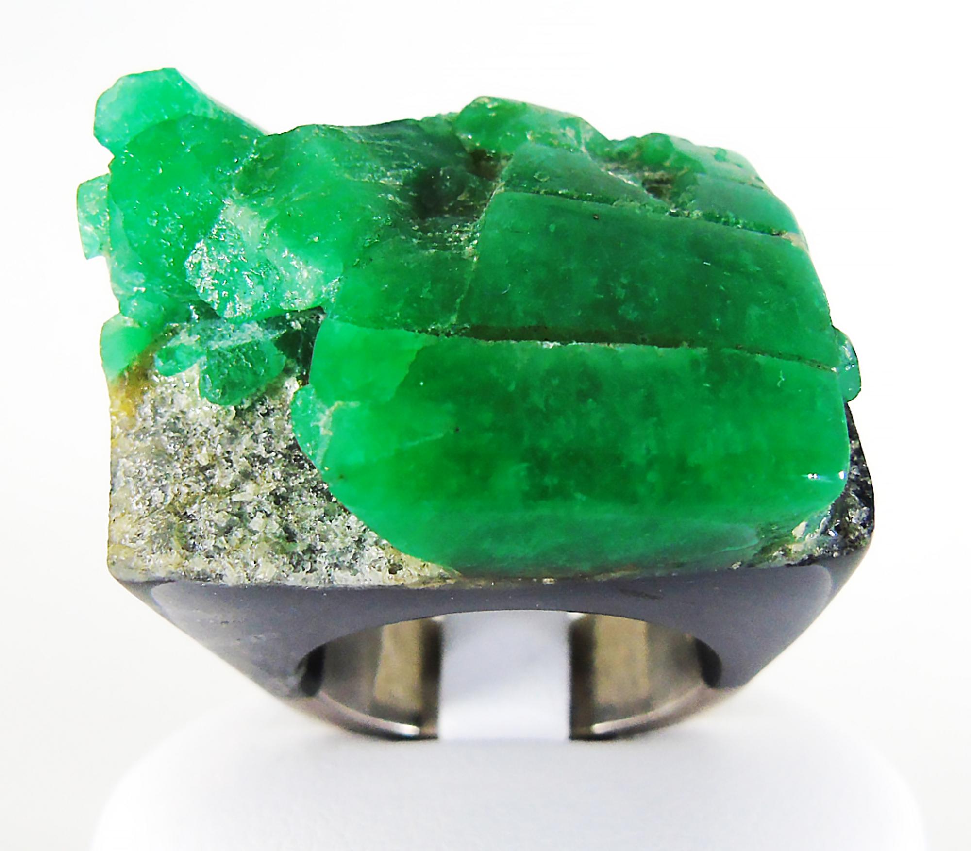 ANELLO IN ARGENTO E SMERALDO GREZZO LEVIGATO Geminazione naturale su matrice...