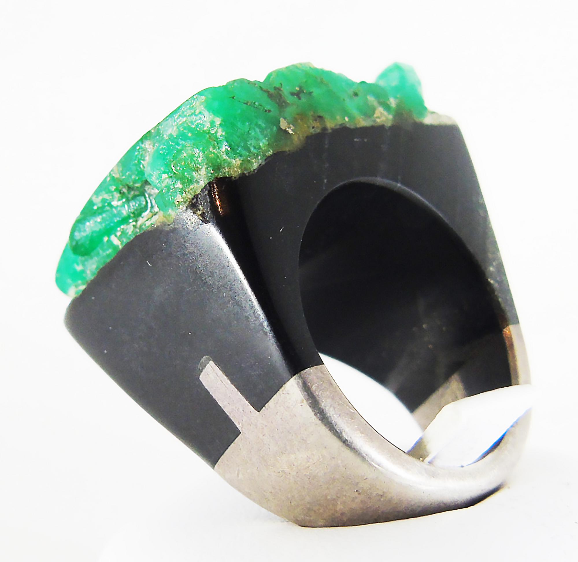 ANELLO IN ARGENTO E SMERALDO GREZZO LEVIGATO