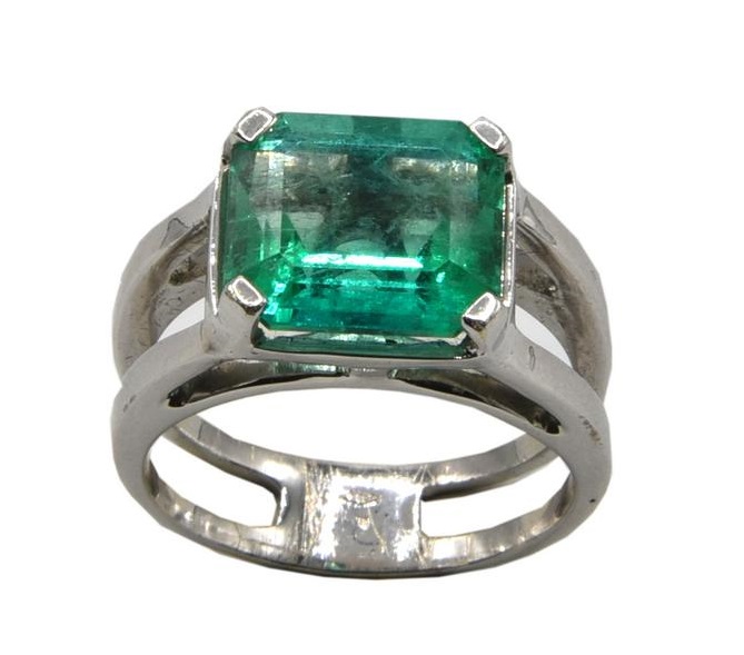 in oro bianco 18kt, con al centro smeraldo colombiano naturale, taglio rettangolare compositio di 4,78 ct circa.