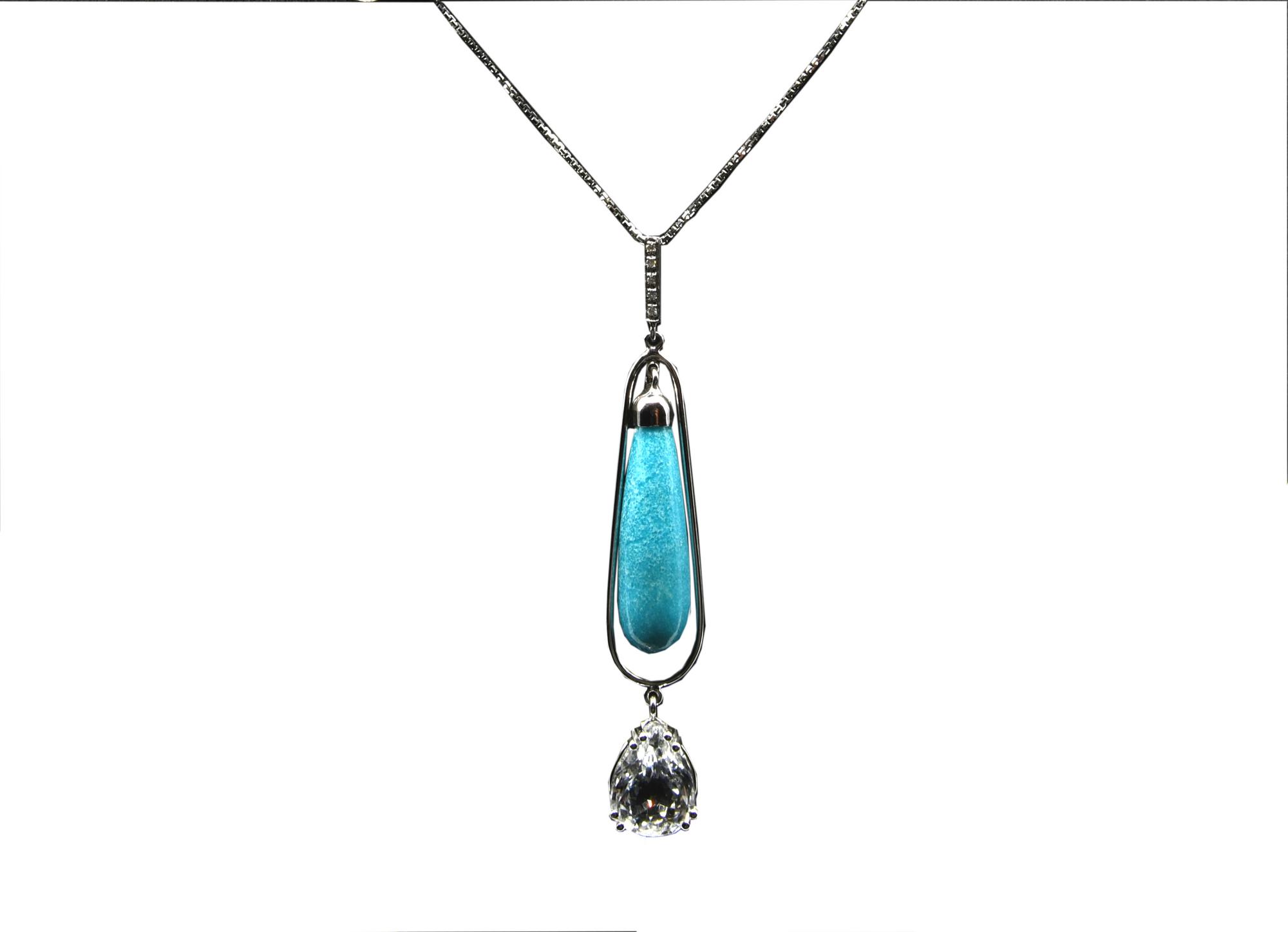COLLANA CON PENDENTE DI TURCHESE, ACQUAMARINA E DIAMANTI