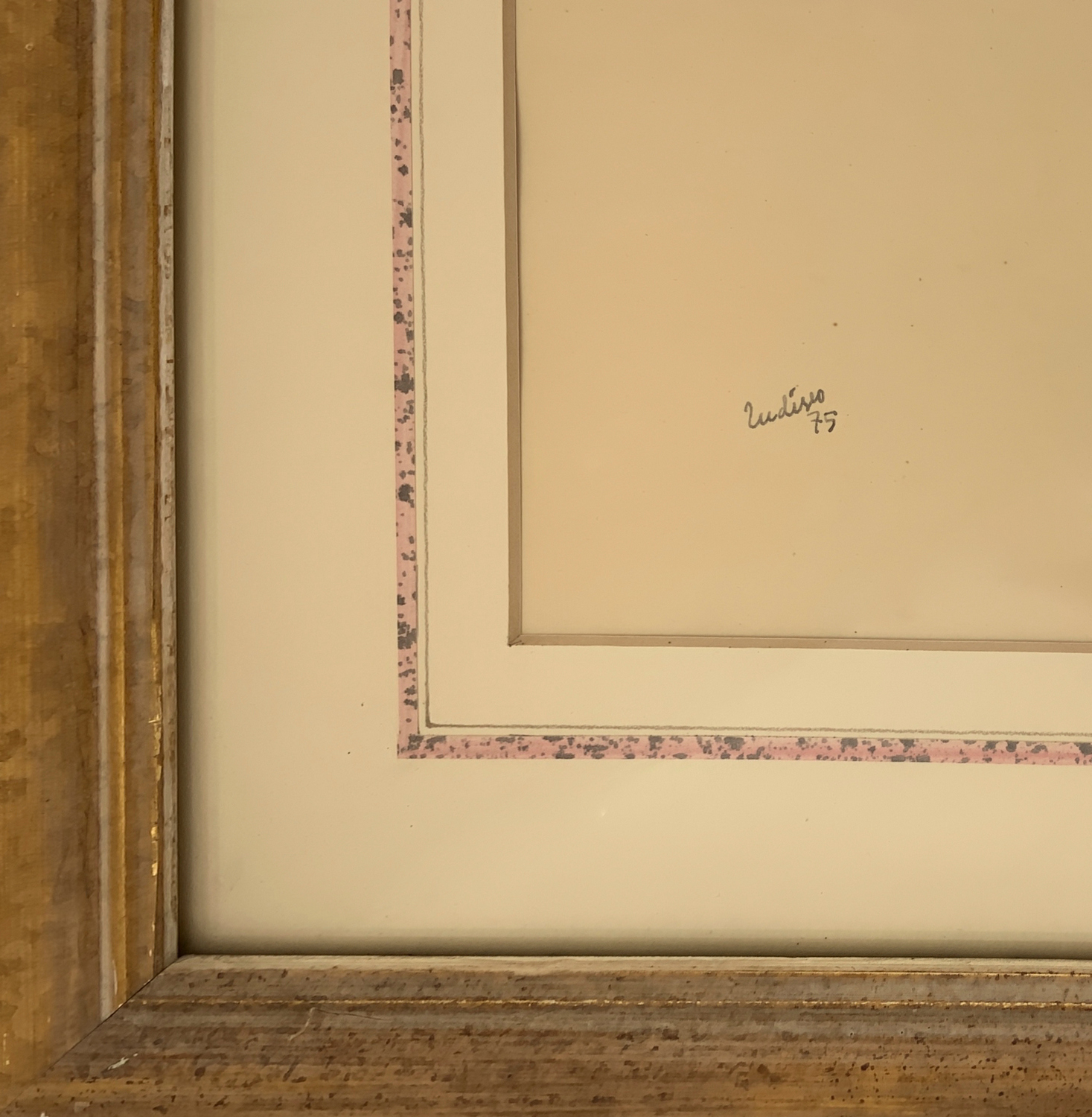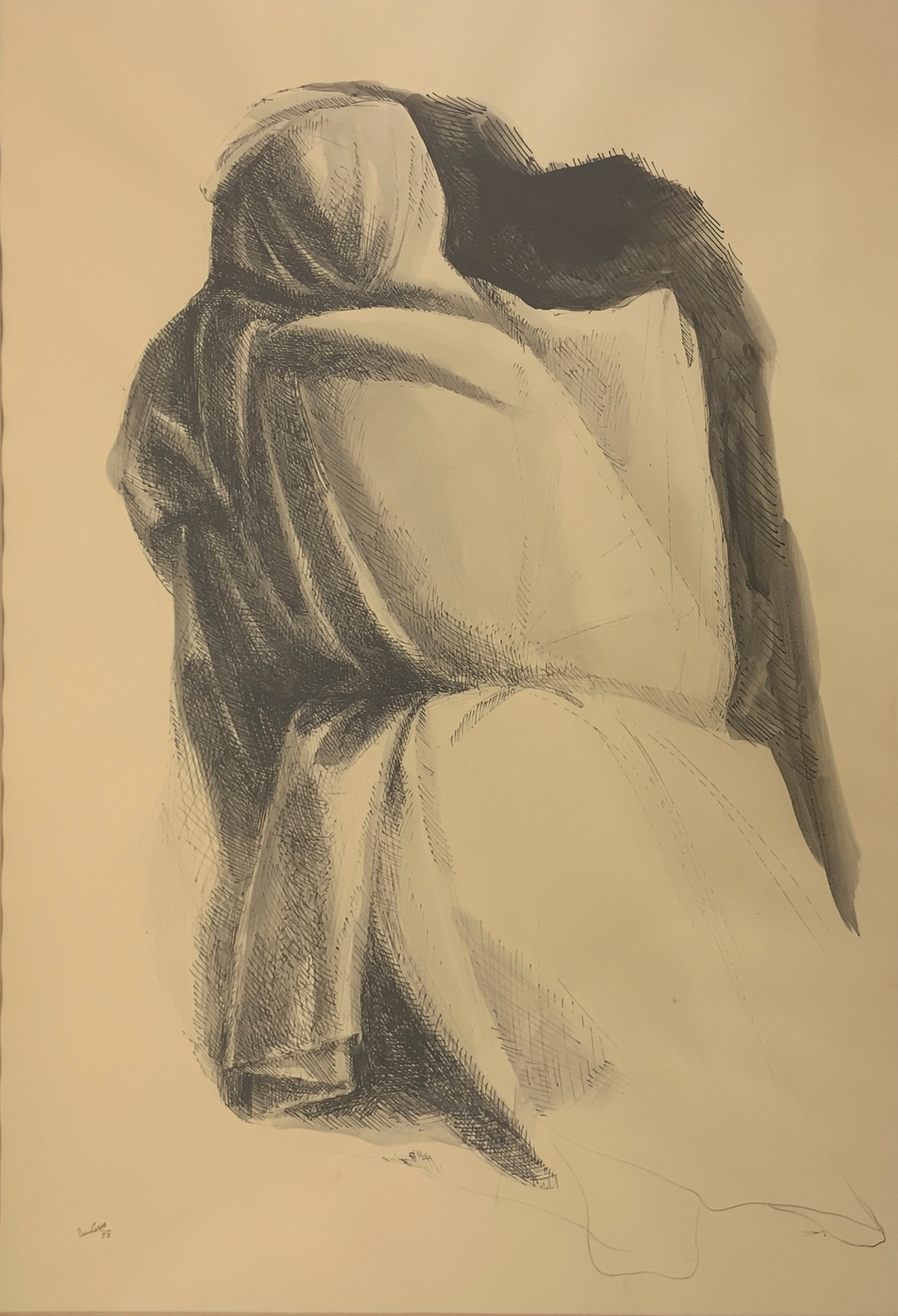 Disegno a china su cartoncino raffigurante corpo velato, Domenico Tudisco. Firmato in basso a sinistra e datato 1975