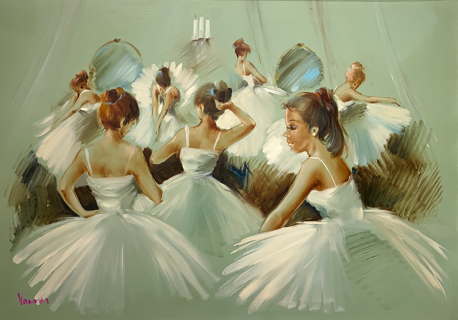 Lot 491 | Pittura a olio su tela raffigurante le ballerine nella backstage. 1920,...