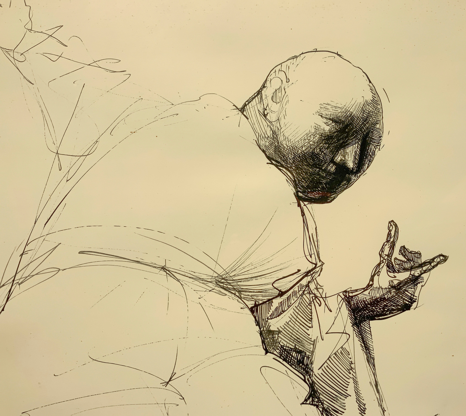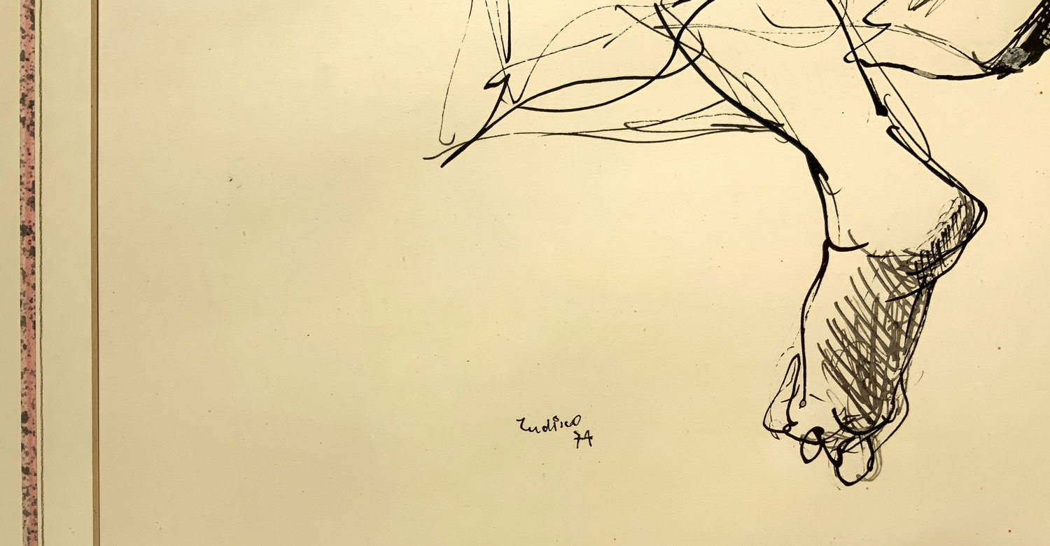 Domenico Tudisco, disegno a china raffigurante karateka. 1974,Firmato in basso a sinistra