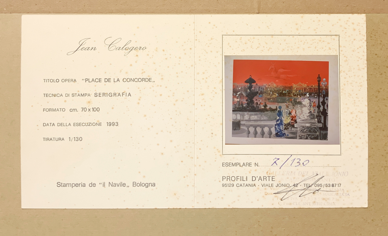 Serigrafia "Place de la Concorde" (1/130), 1993, Jean Calogero. 1993, 70x100 cm, nel telaio 78 x 108 cm
