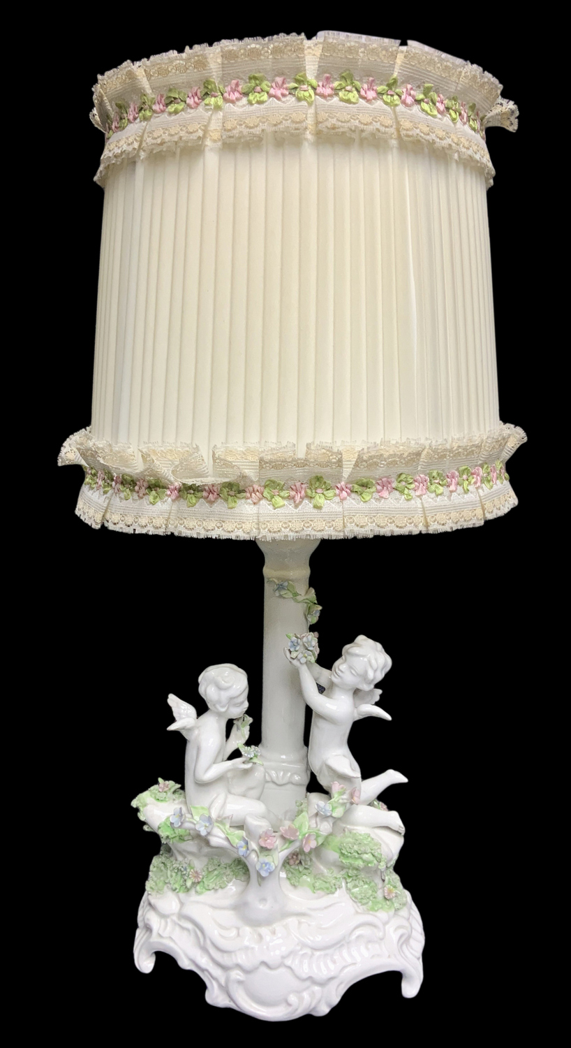 Abat Jour a Capodimonte Porcellana raffigurante il gioco Puttis.