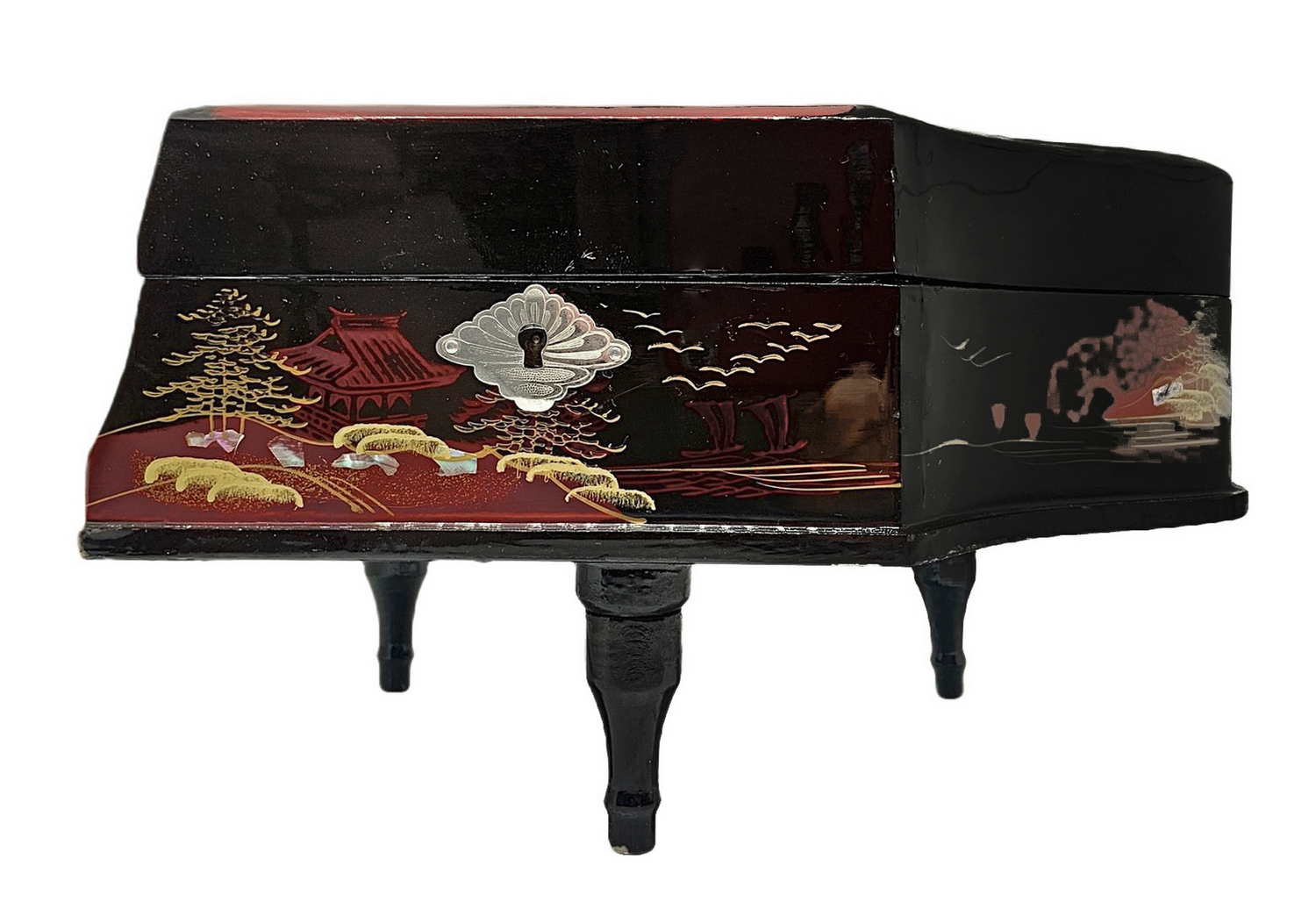 Scatola di musica per pianoforte. con ballerina di colore nero. H 15 cm 23x15...