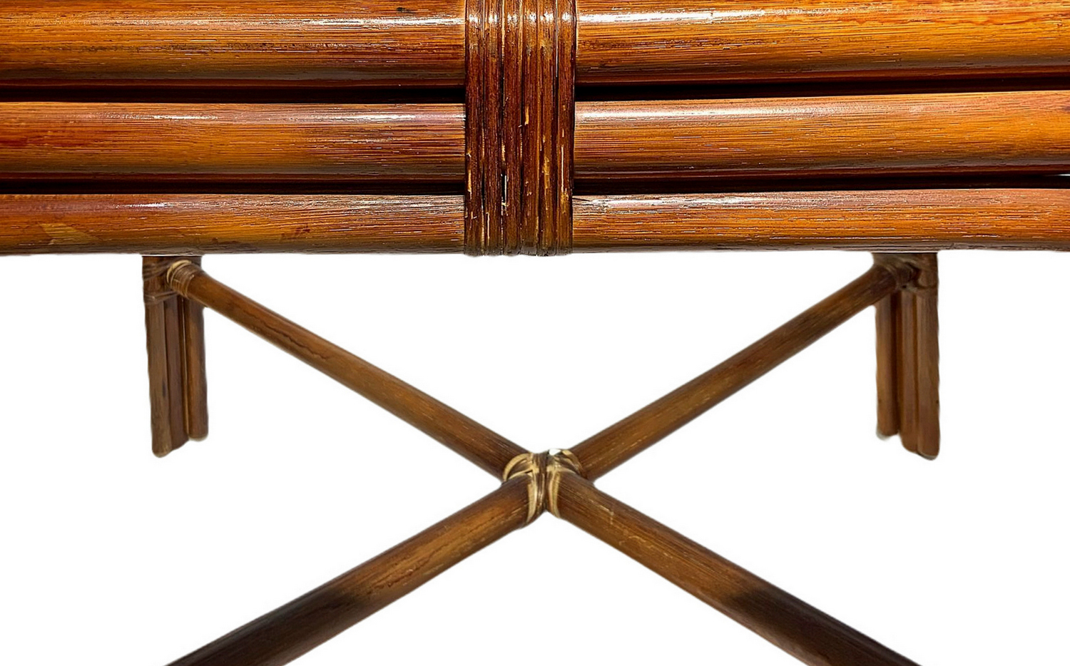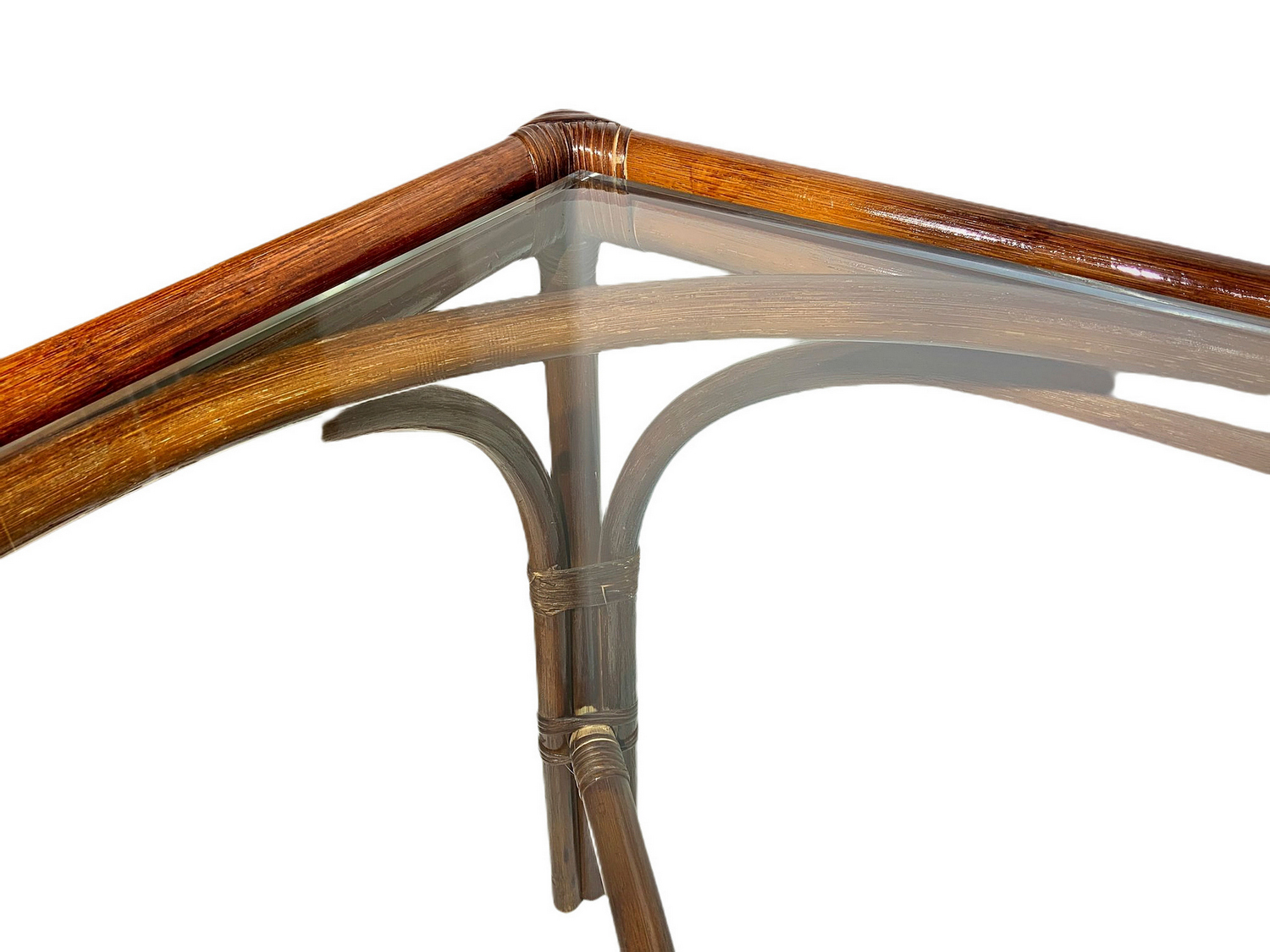 Tavolo in rattan con piano in vetro. H 95 x 71 cm. H 95 x 71 cm