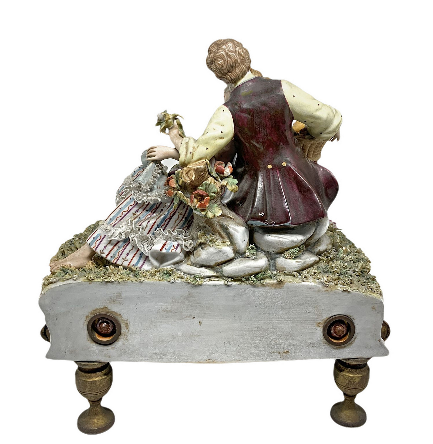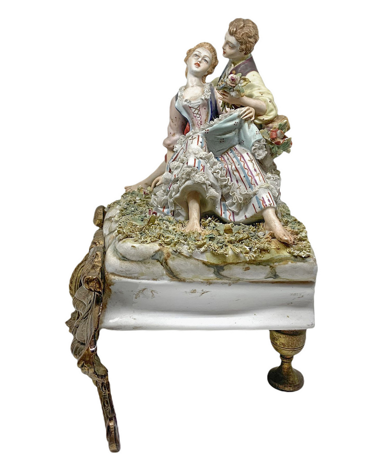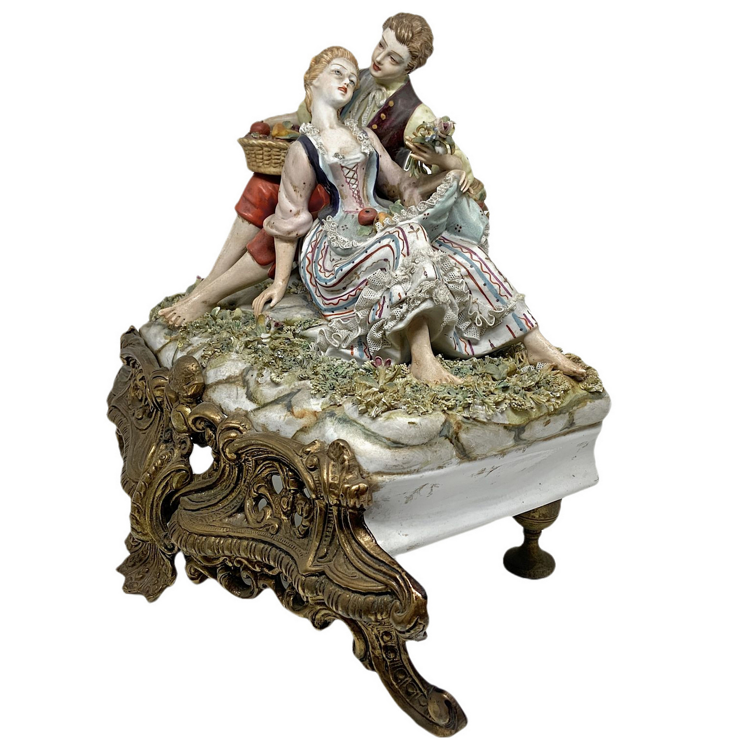 Statua in porcellana raffigurante gli amanti, con base in metallo dorato, 20...