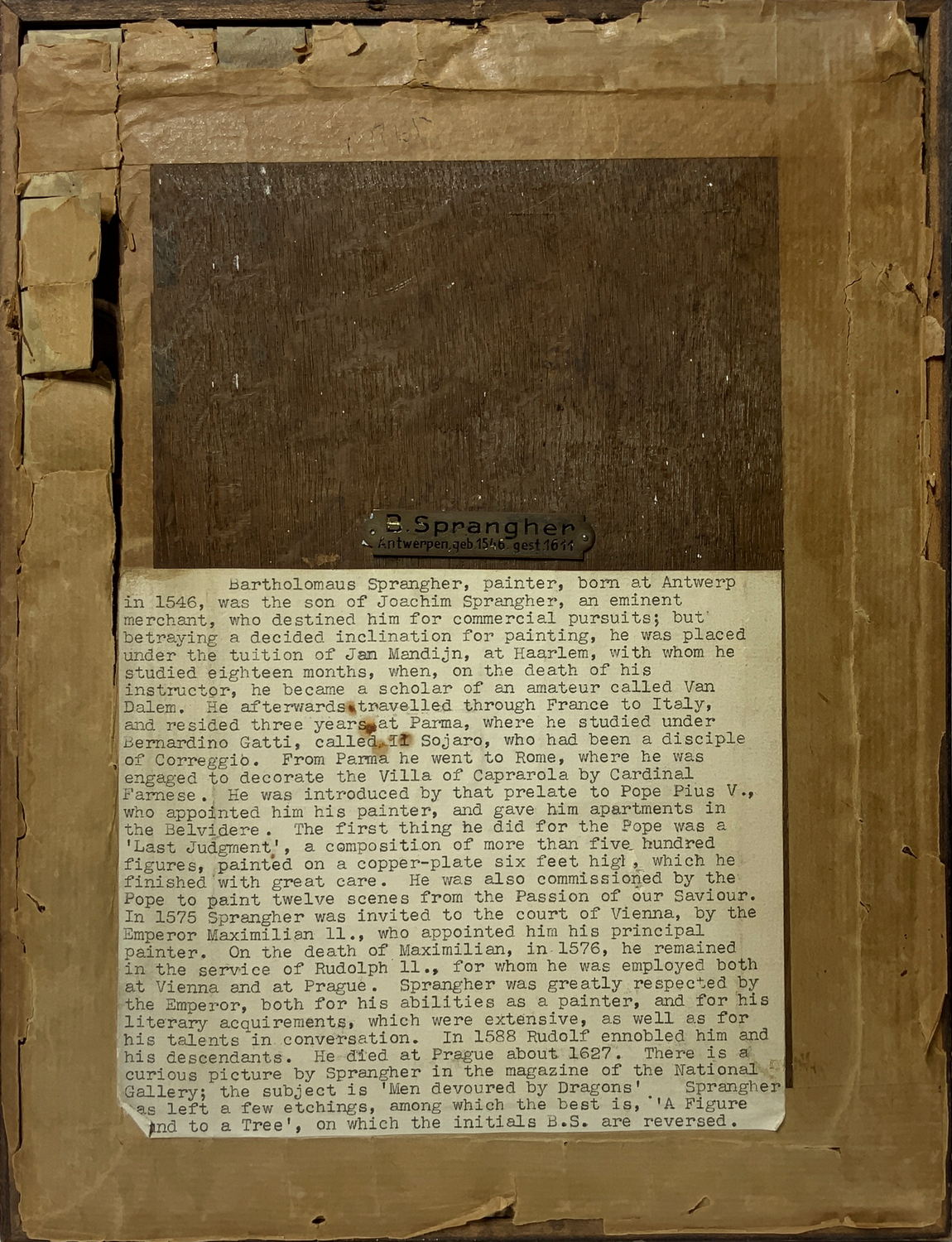 Coppia di dipinti su pergamena raffiguranti " Martirio di Santo Stefano" e "Salomone", Bartholomaeus Spranger (Anversa, 1546 – Praga, 1611) attr.