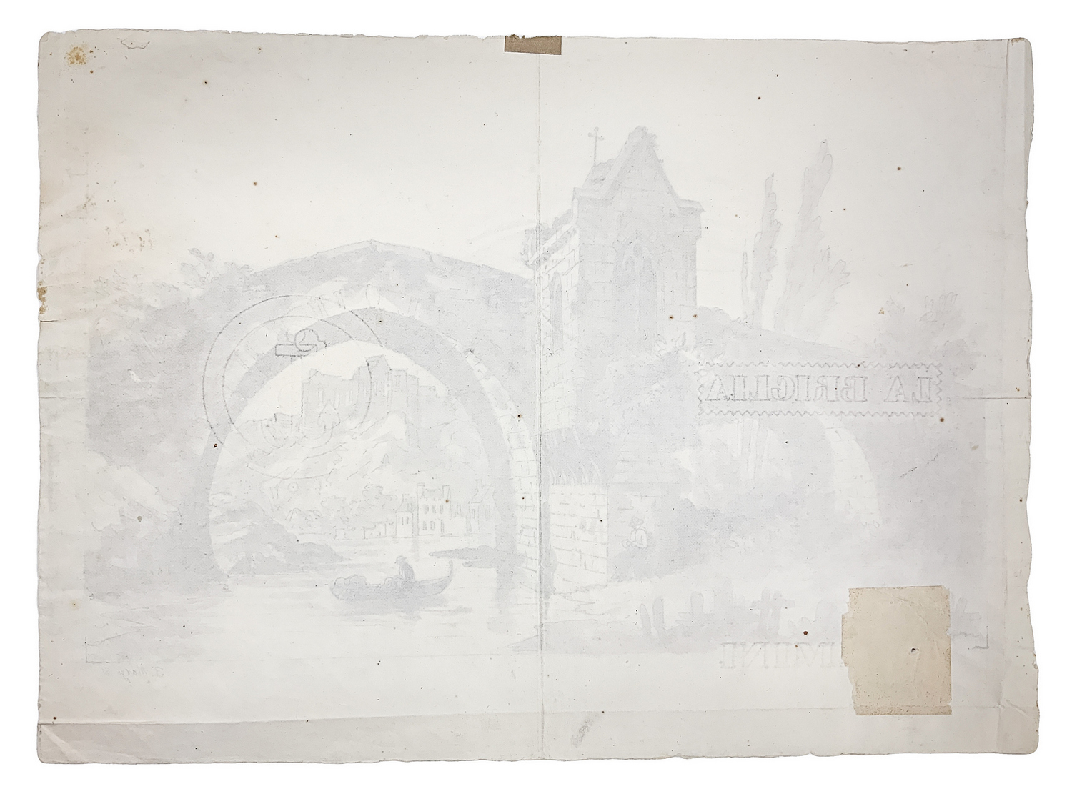 Disegno, acquerello grigio inchiostro raffigurante il ponte della cappella,...