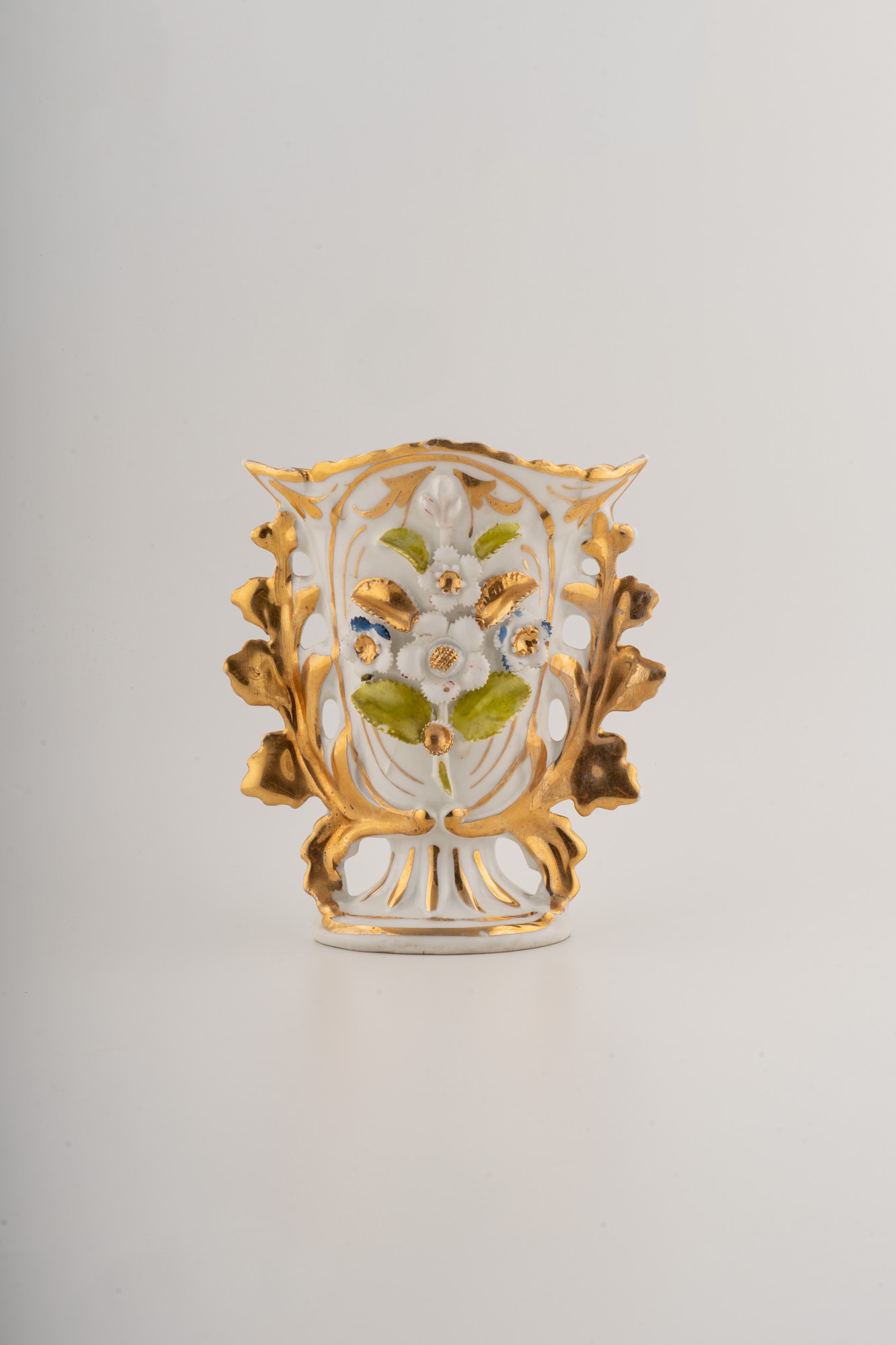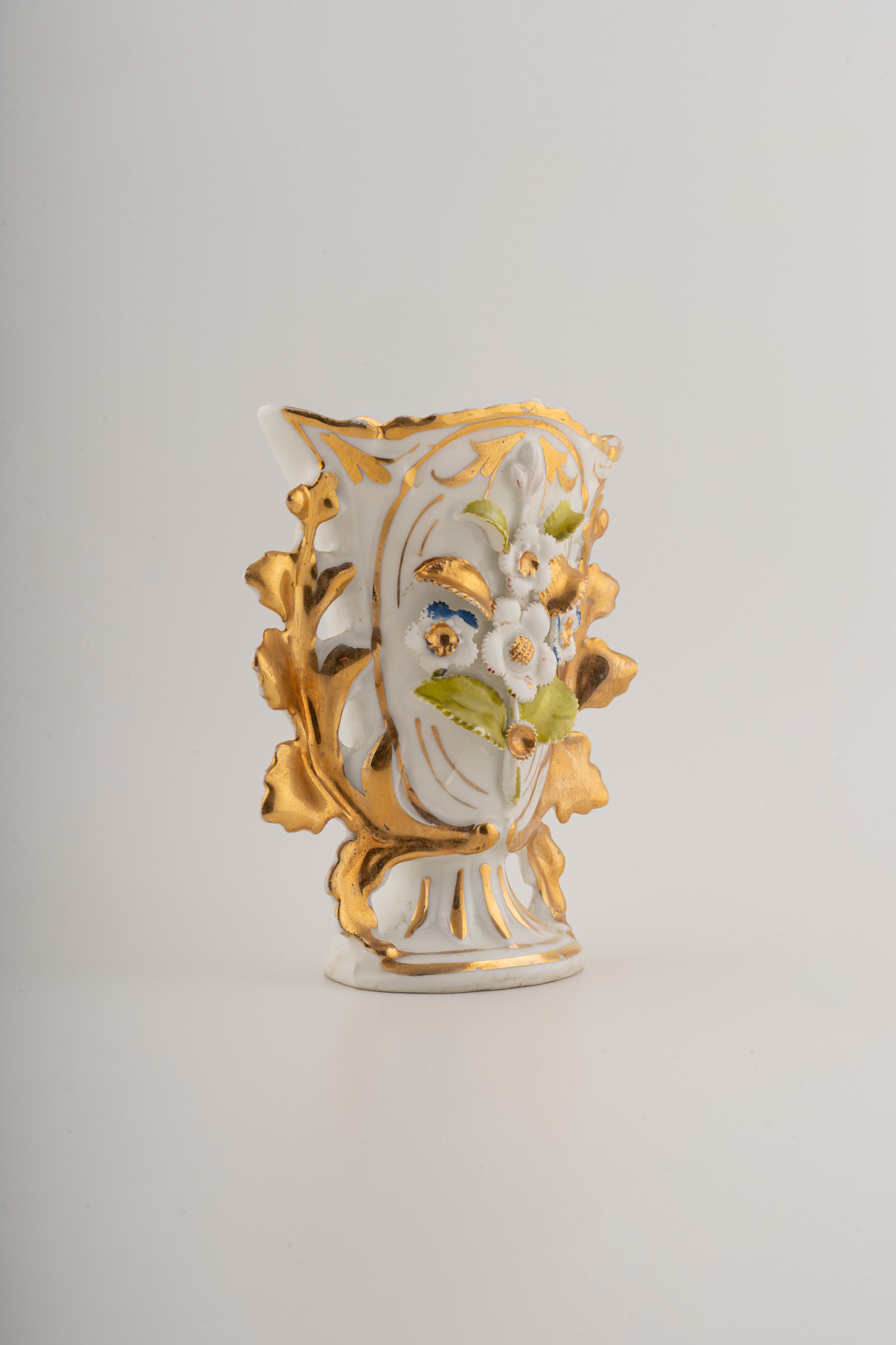 Piccolo vaso Luigi Filippo metà XIX secolo in porcellana a decori policromi a...