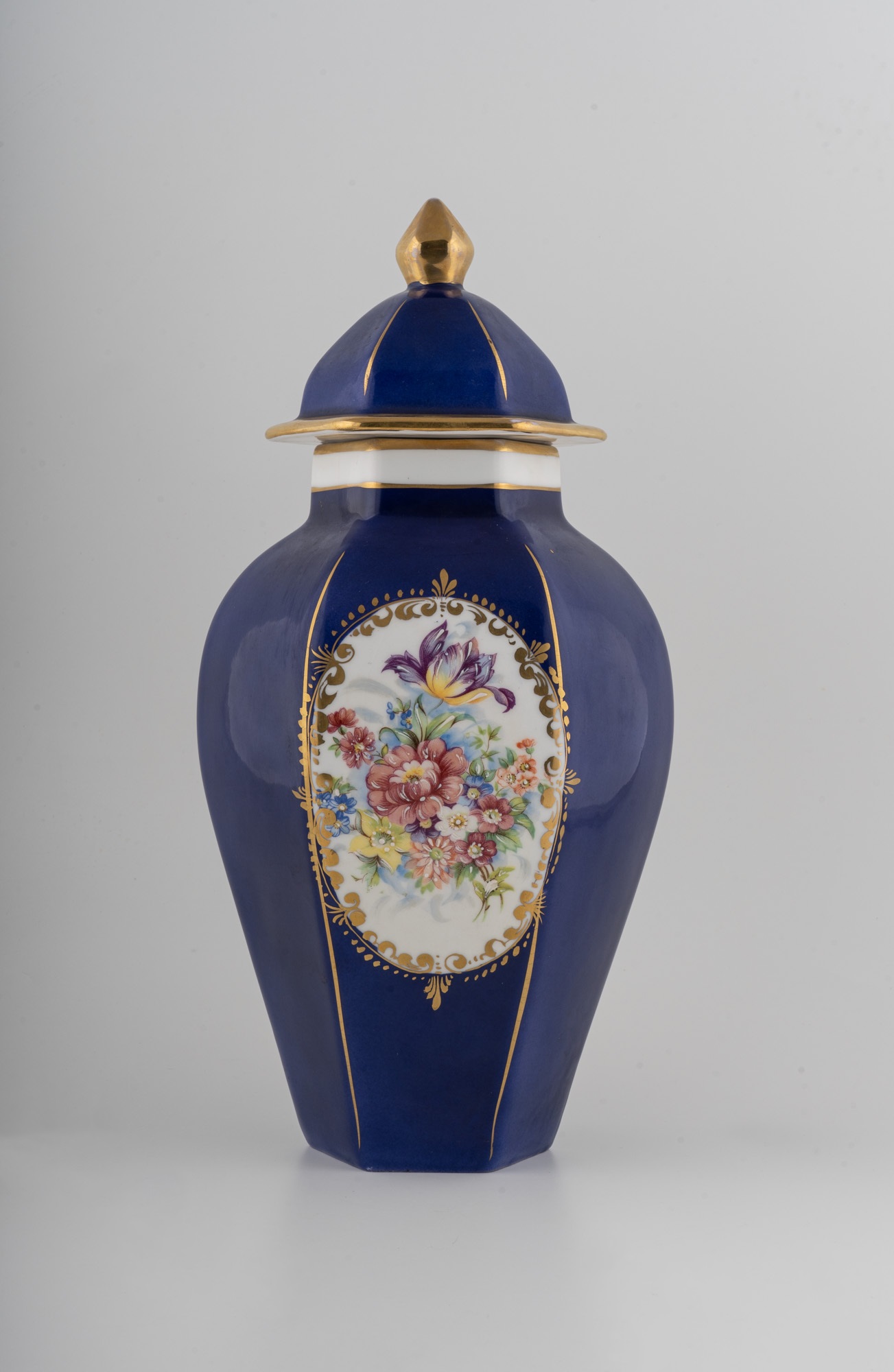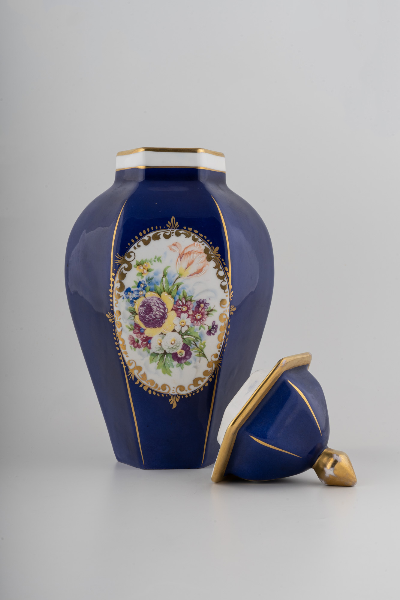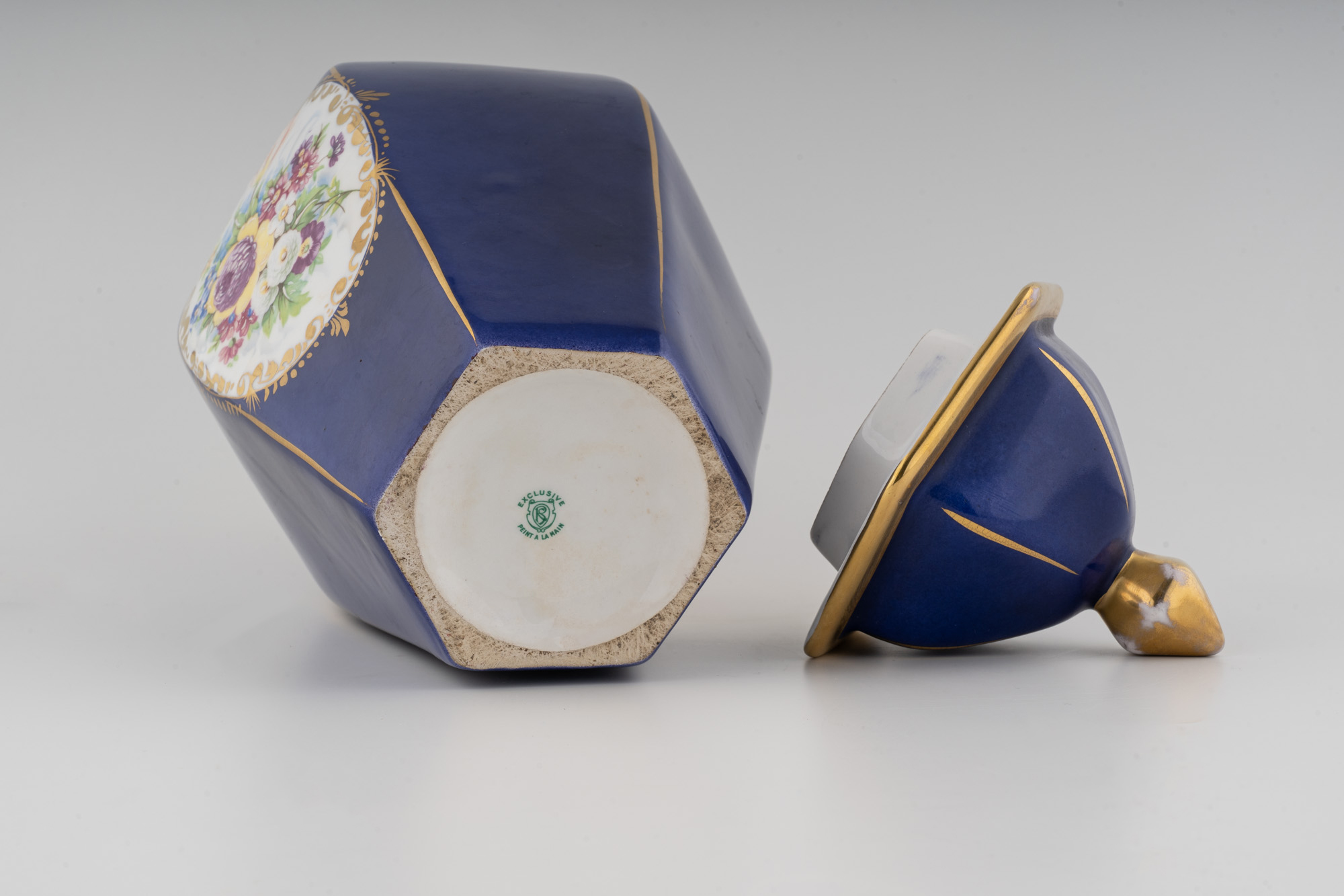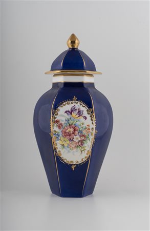 Potiche in porcellana Francia XX secolo in porcellana bianca e blu, dipinta a...