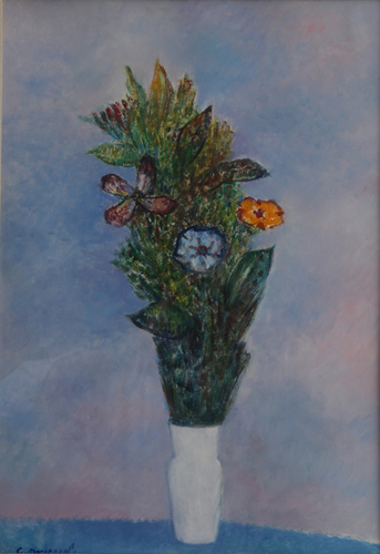 Giovanni Omiccioli (Roma, 1901 –1975). Vaso di Fiori. Olio su cartoncino, firma in basso a sinistra, con cornice. Sul retro autentica dell’artista. Allegata autentica su foto rilasciata dall’Archivio Omiccioli al n°000152011. cm36x50.
