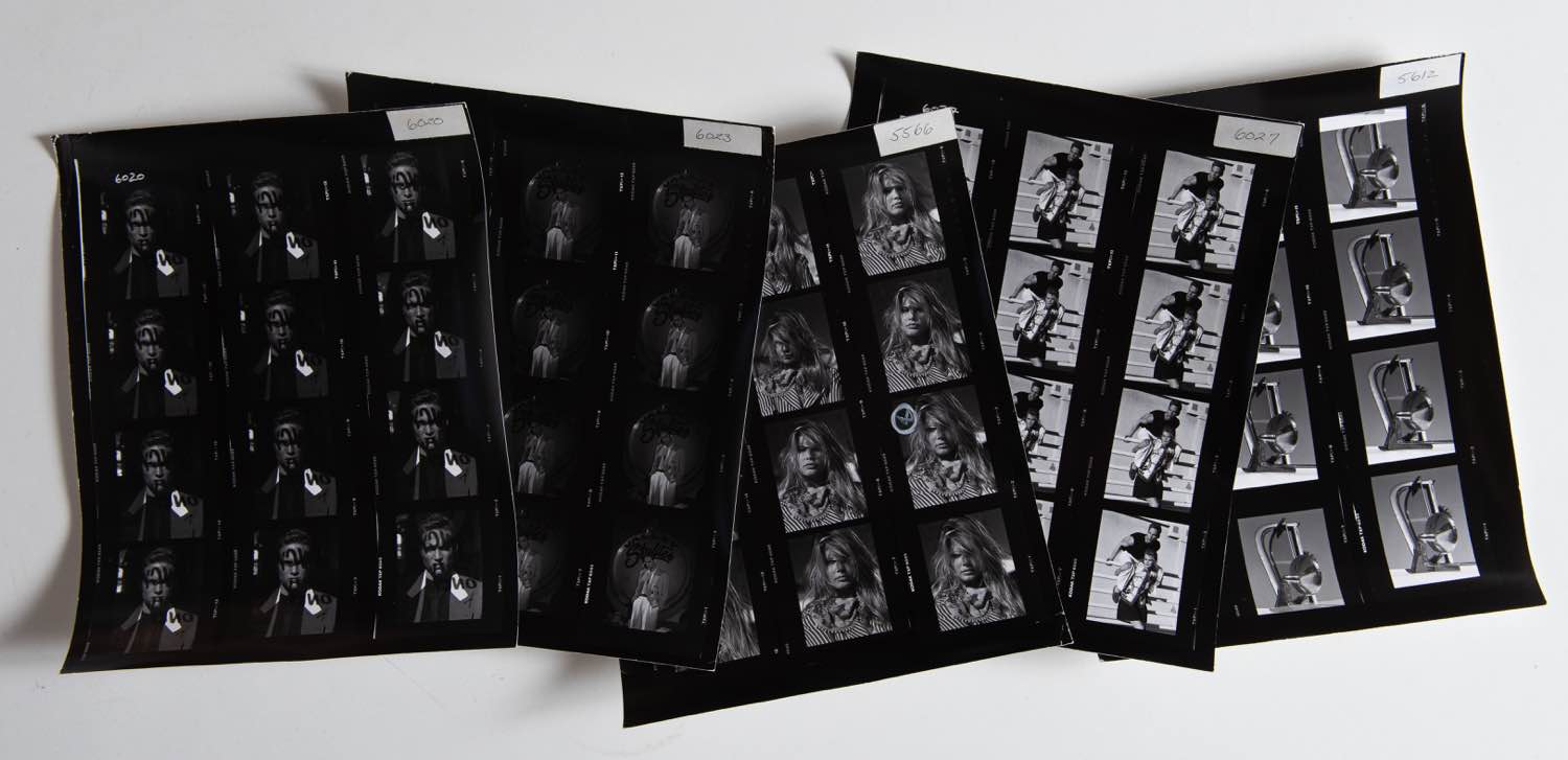 Albert Watson (Edinburgo, 1942) per catalogo Byblos - 5 provini stampati su carta B/N, il foglio contiene 12 foto cadauno, cm 28x22 Usure e segni del tempo. Provenienza: Collezione Nando Miglio.