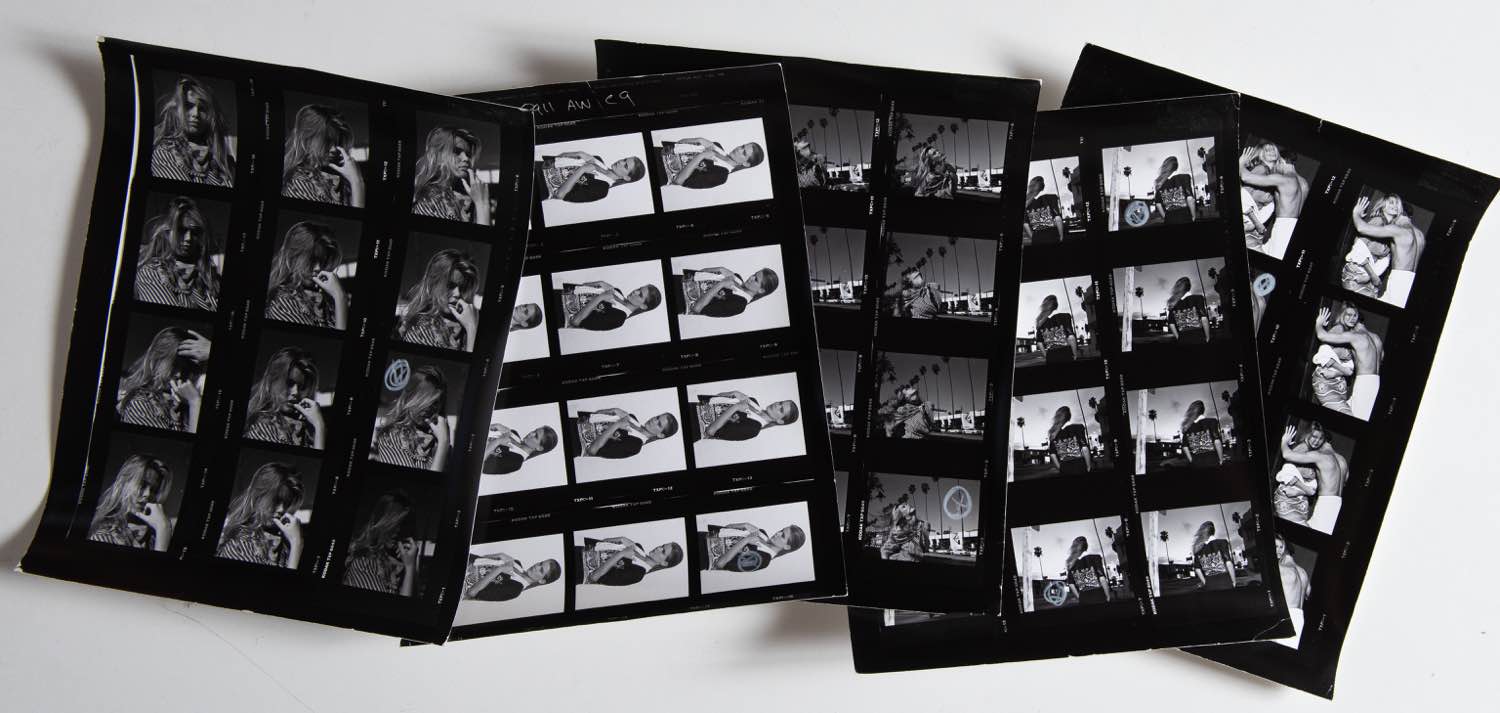 Albert Watson (Edinburgo, 1942) per catalogo Byblos - 5 provini stampati su carta B/N, il foglio contiene 12 foto cadauno, cm 28x22 Usure e segni del tempo. Provenienza: Collezione Nando Miglio.