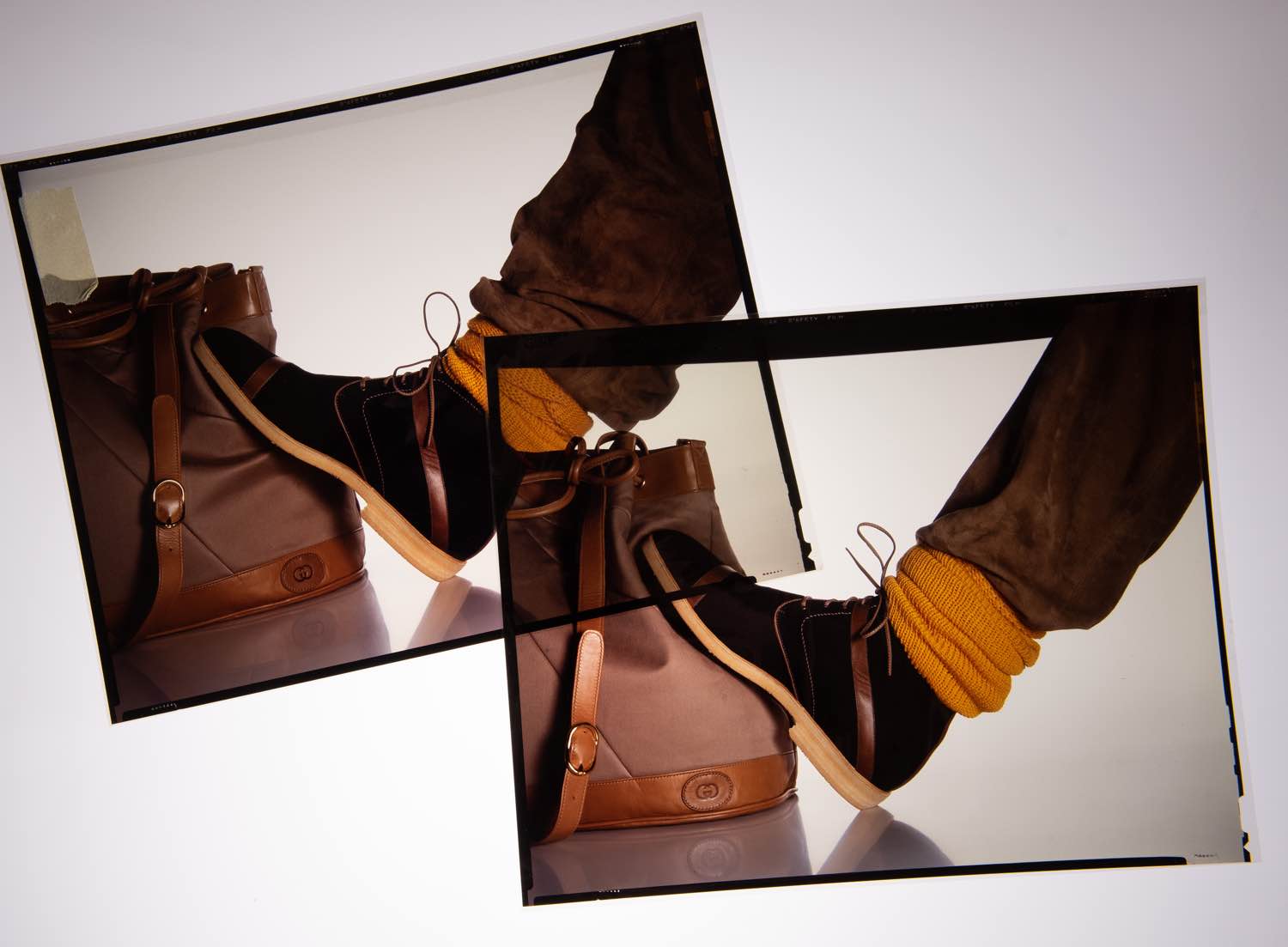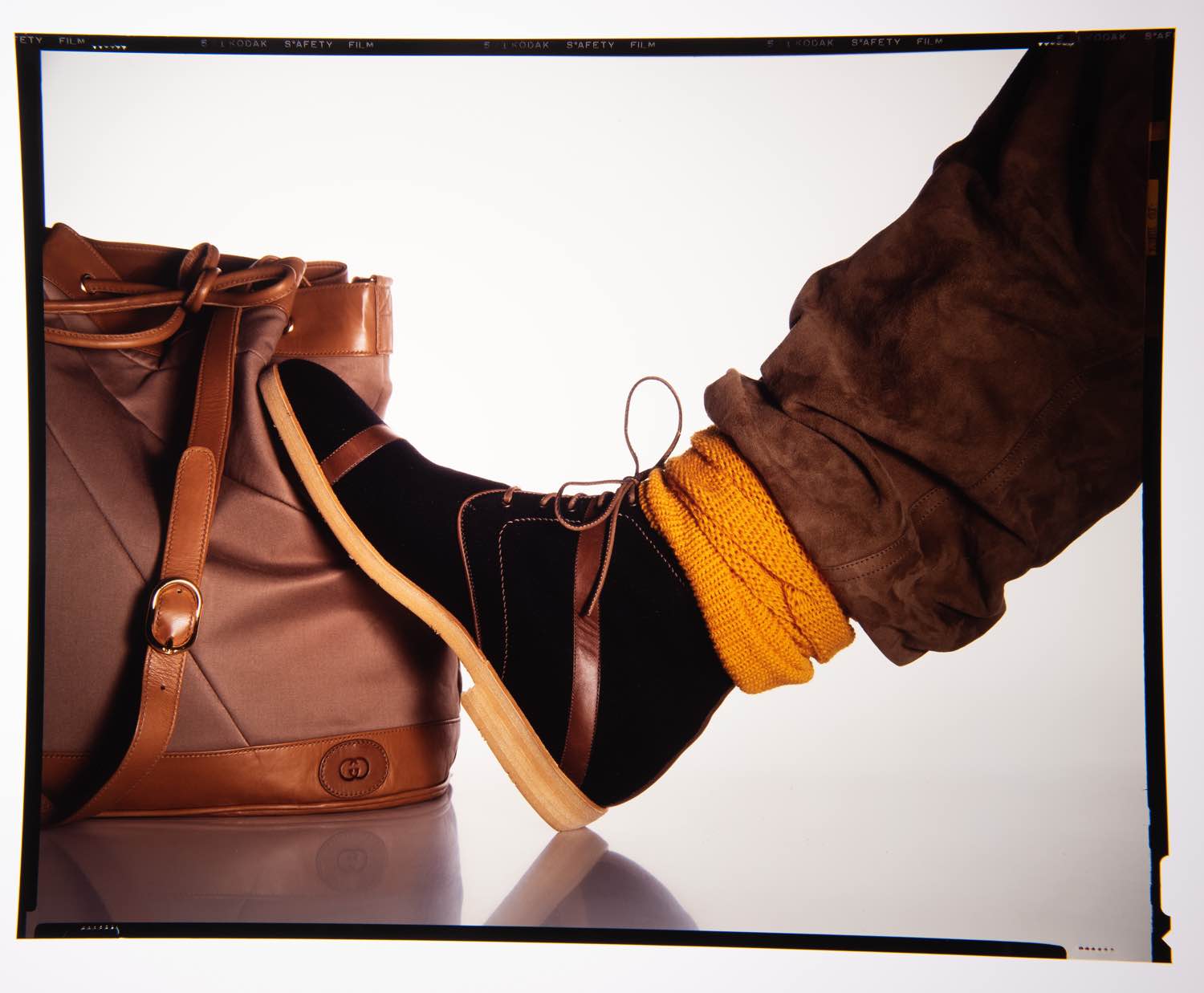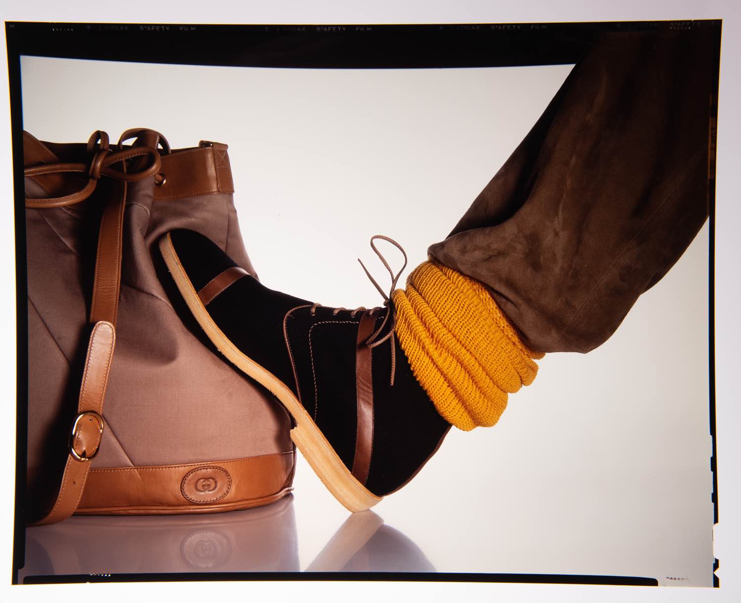 Irving Penn (Plainfield, 1917 - New York, 2009) per catalogo Gucci P/E 1983, foto scarpe con calze