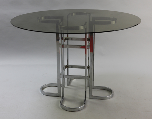 Lot 139 | Tavolo con fusto in metallo cromato e piano in cristallo fumè, design degli...