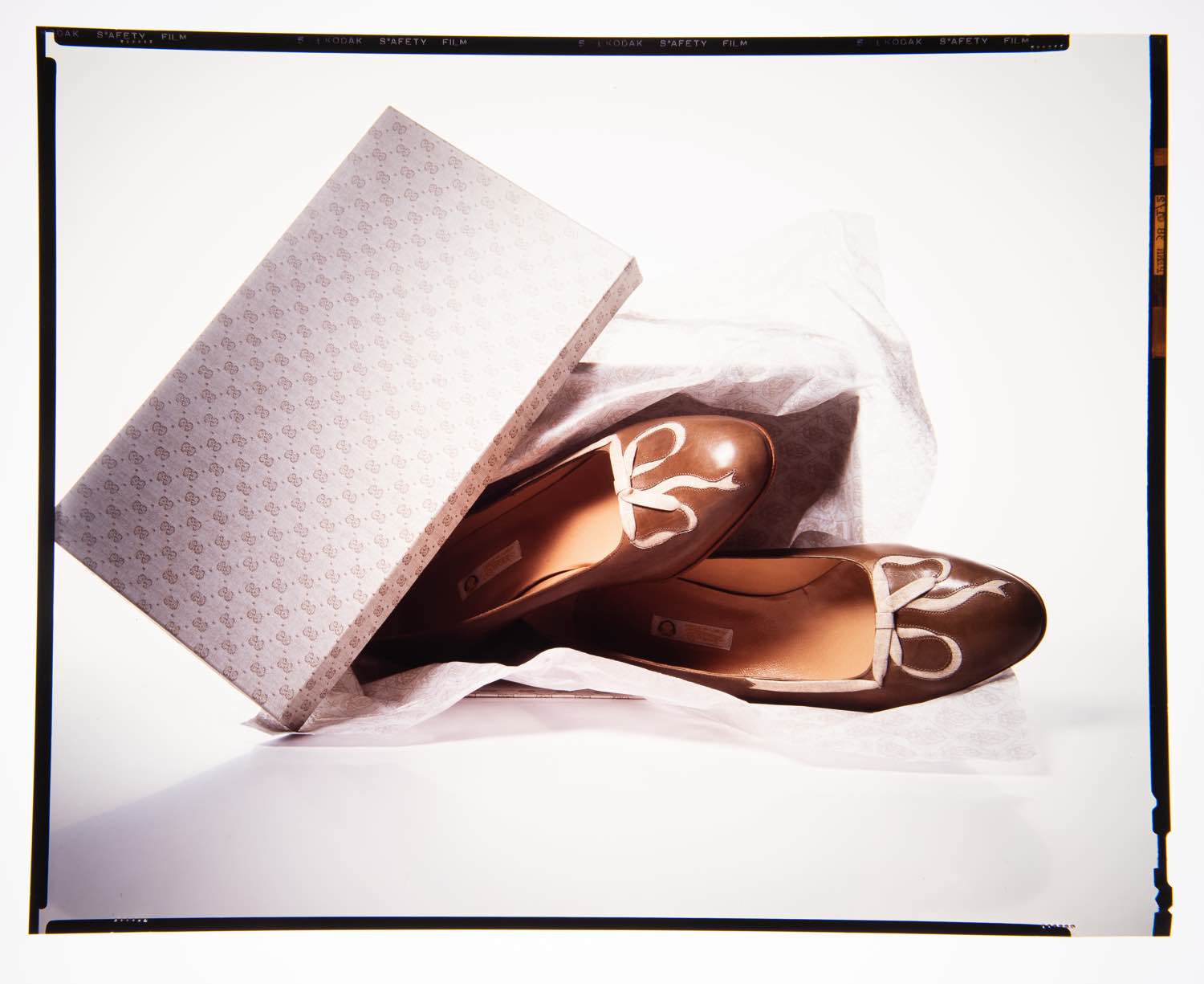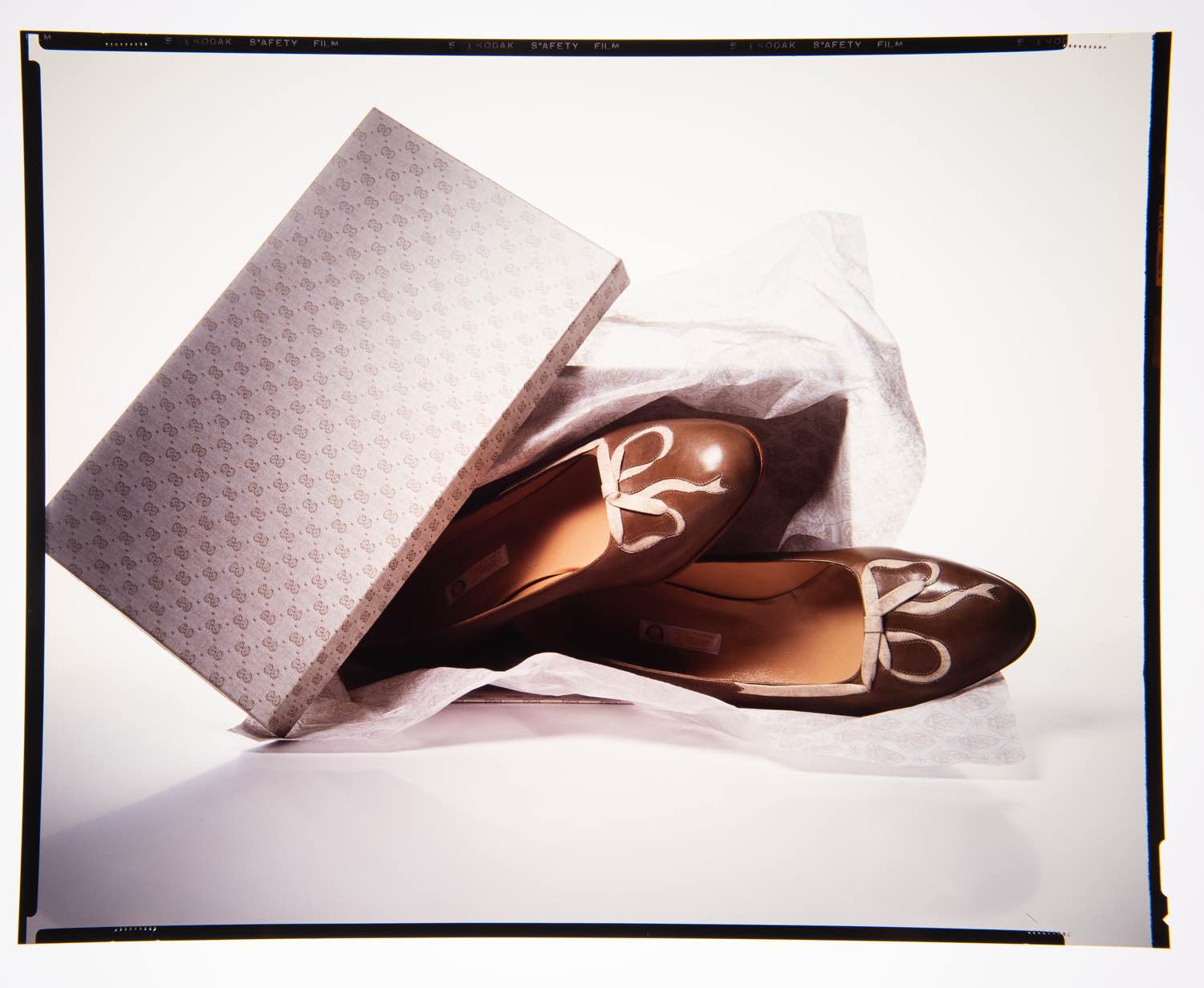 Irving Penn (Plainfield, 1917 - New York, 2009) per catalogo Gucci P/E 1983, foto scarpe e scatole - 2 lastre fotografiche - set n.21, cm 25x20 Usure e segni del tempo. Provenienza: Collezione Nando Miglio.