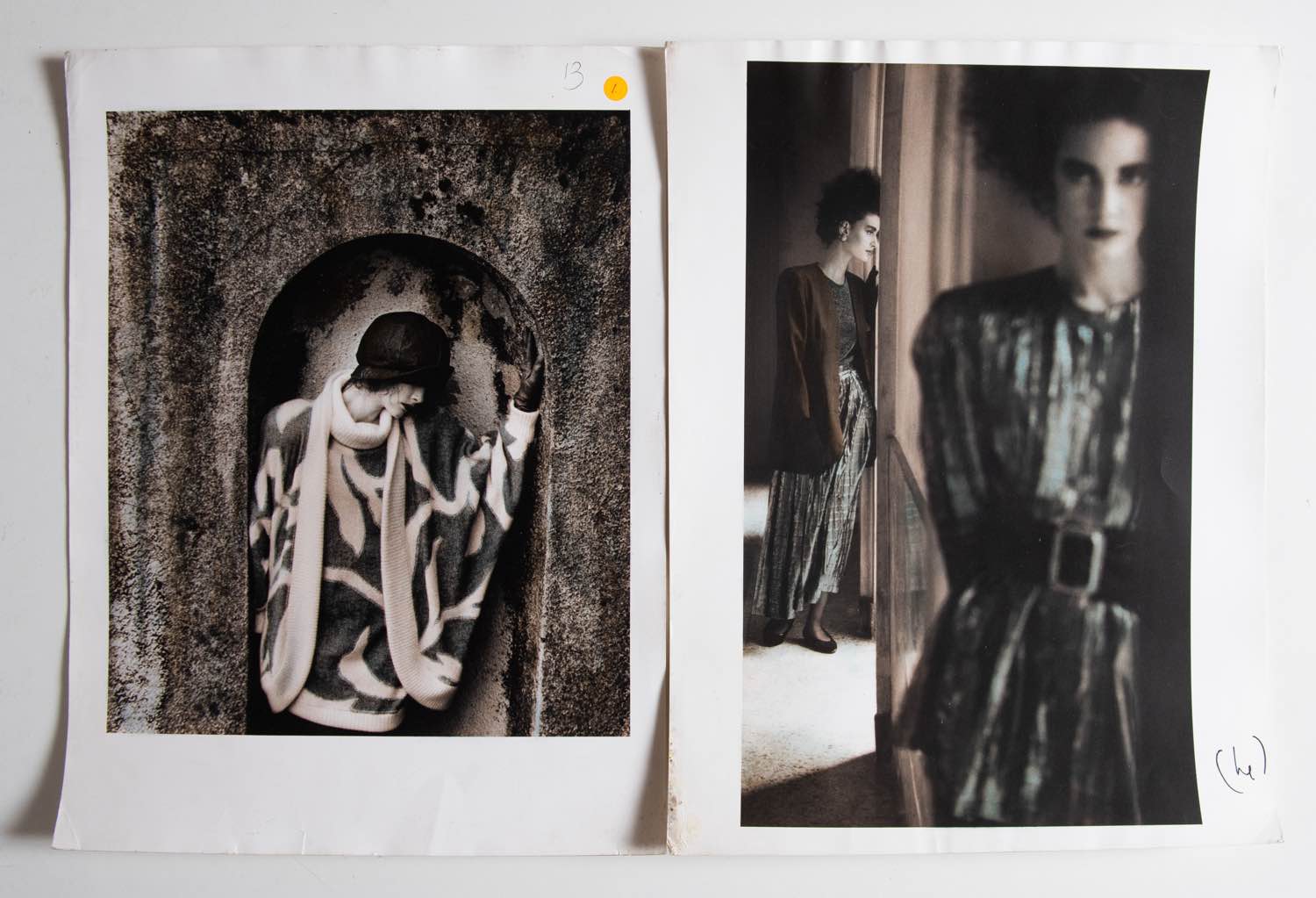 Cheryl Koralik (XX secolo) per catalogo Mimmina A/I 1986/87 - 2 stampe fotografichea a colori - Cibachrome, cm 31x41 Usure e segni del tempo. Provenienza: Collezione Nando Miglio.