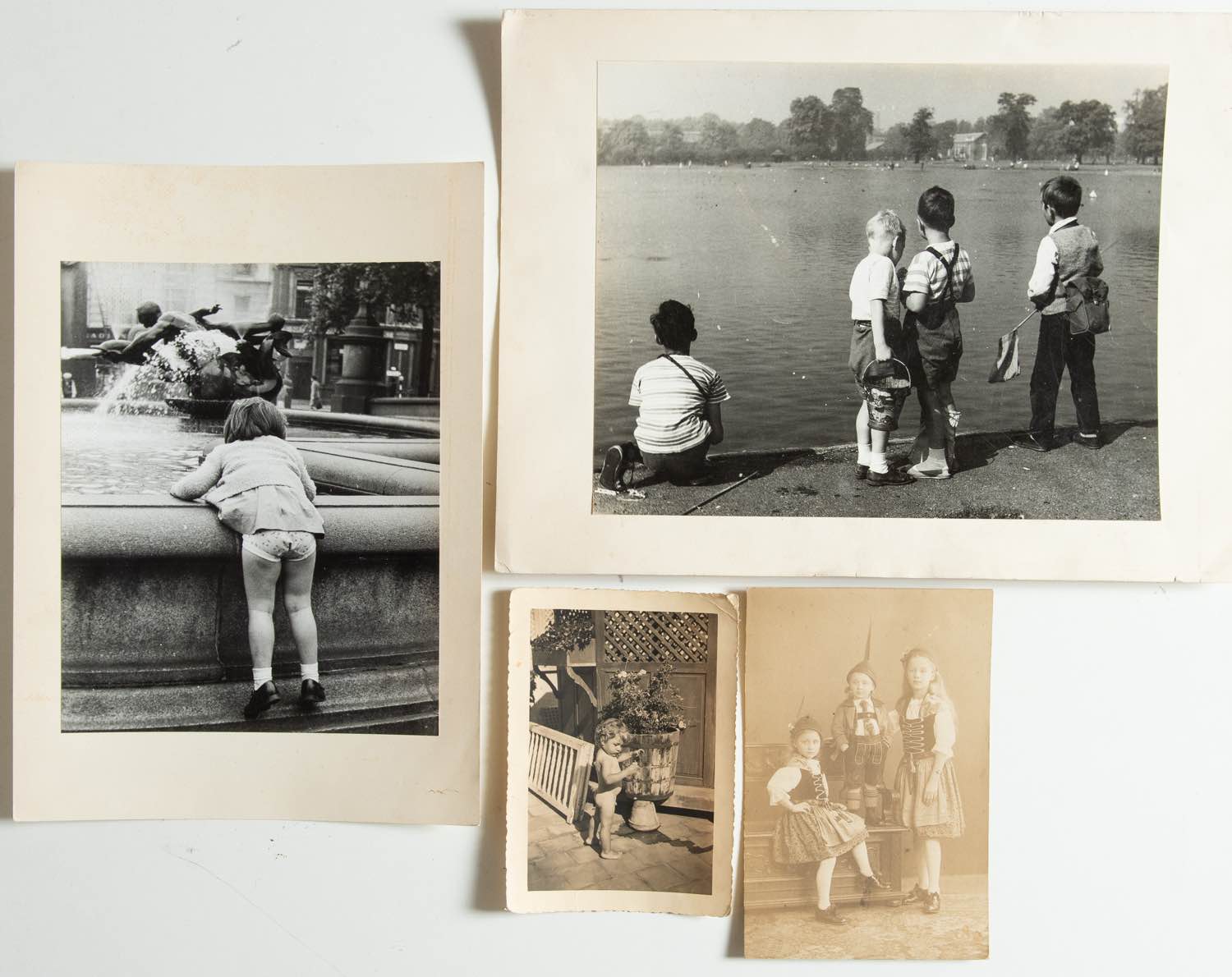 Nando Miglio (Venezia, 1939 - Padova, 2015) e artisti anonimi (XX secolo), Fotografie raffiguranti bambini - 9 stampe fotografiche di soggetti vari (bambino nudo, bambini in costumi tirolesi, bambini, bambini a Venezia, bambini a Londra). 1 esemplare su carta virata seppia, cm 12x17; 8 esemplari su carta in B/N, cm 29,5x24 e 24x30 max Usure e segni del tempo. Provenienza: Collezione Nando Miglio.