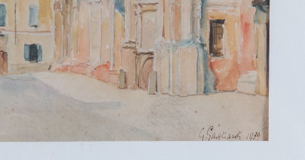 GIUSEPPE GAGLIARDI (1902 - 2005) "Senza titolo", 1939. Acquerello su carta. Cm 33x24. Opera firmata e datata in basso a destra G. Gagliardi 1939.