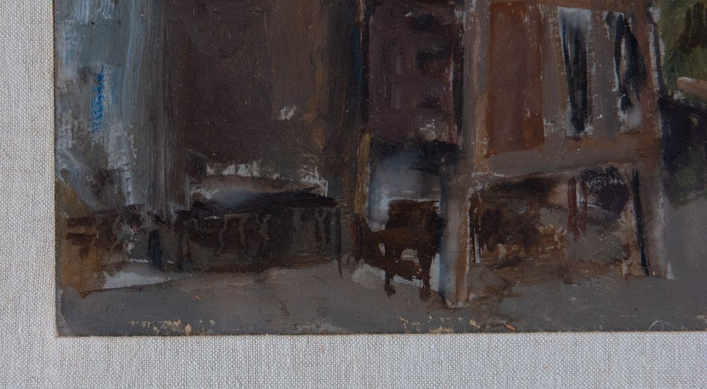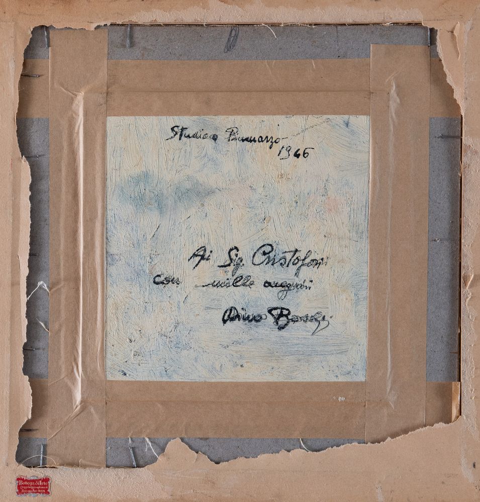 DINO BOSCHI (Bologna 1923 - 2015) "Senza titolo", 1946. Olio su tavola. Cm 21x21. Al retro opera datata e firmata 1946 Dino Boschi.