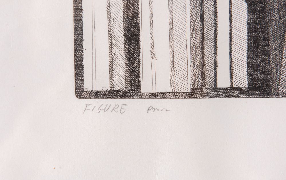 NERI POZZA (Vicenza 1912 - 1988) "Figure", 1978. Acquaforte su carta. Lastra: cm 14x32. Opera firmata in basso a destra Neri Pozza, datata in alto a destra 1978. Opera intitolata in basso a sinistra "Figure". Reca numeri di tiratura in basso a sinistra: prova. Reca data su lastra 1978.