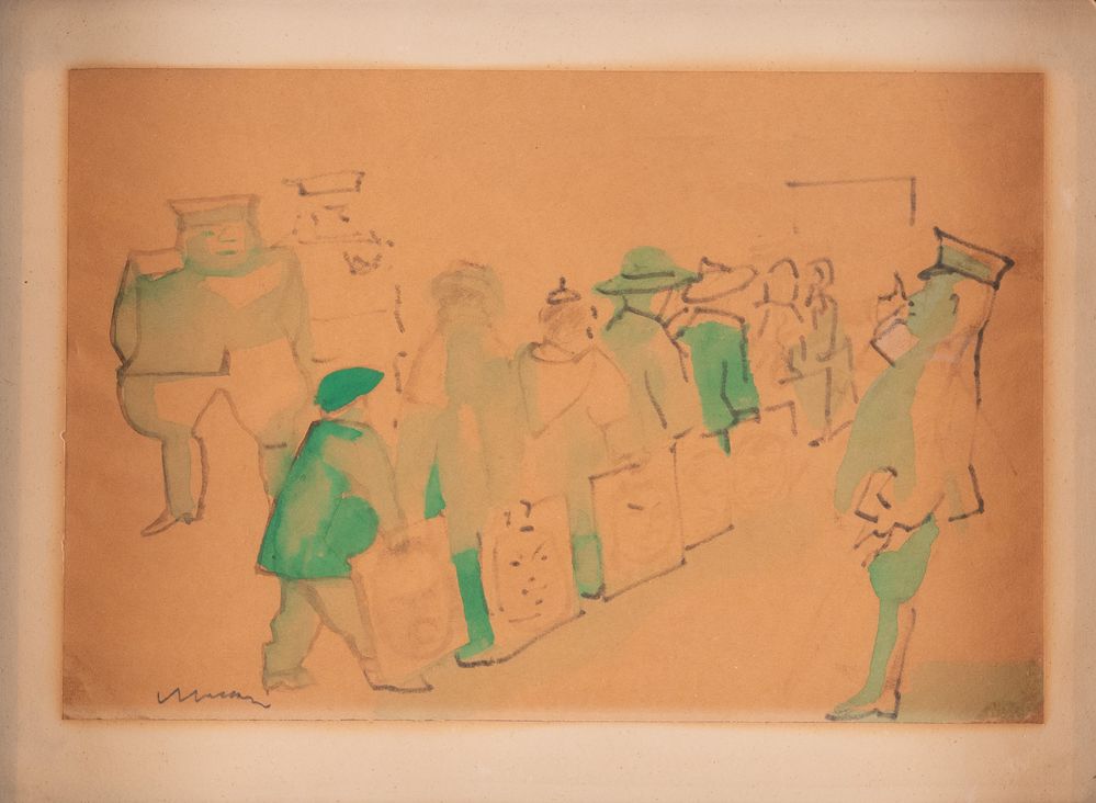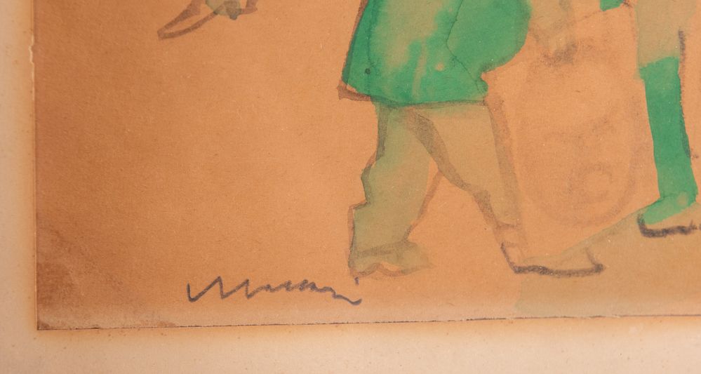 MINO MACCARI (Siena 1898 - Roma 1989) "Senza titolo". Acquerello su carta. Cm 24x36,5. Opera firmata in basso a sinistra Maccari.