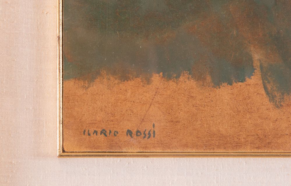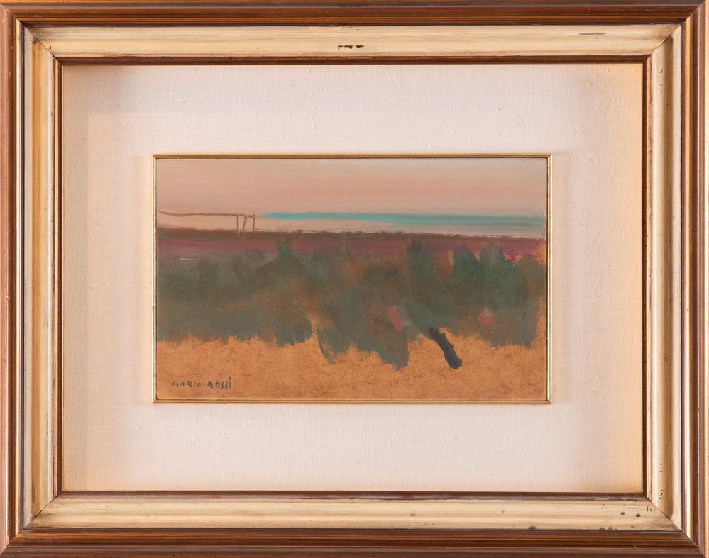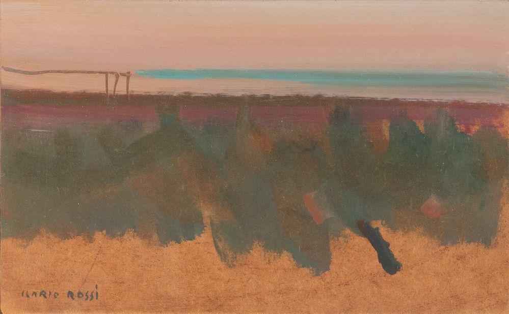 ILARIO ROSSI (Bologna 1911 - 1994) "Senza titolo", 1960. Olio su faesite. Cm 18x28. Opera firmata in basso a sinistra Ilario Rossi.
