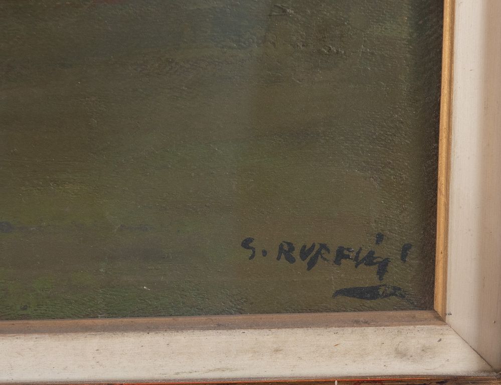GIULIO RUFFINI (Villanova di Bagnacavallo 1921 - Ravenna 2011) "Paesaggio". Olio su tela. Cm 91x120,5. Opera firmata in basso a destra Ruffini.