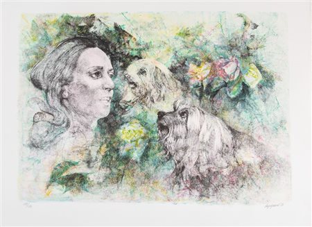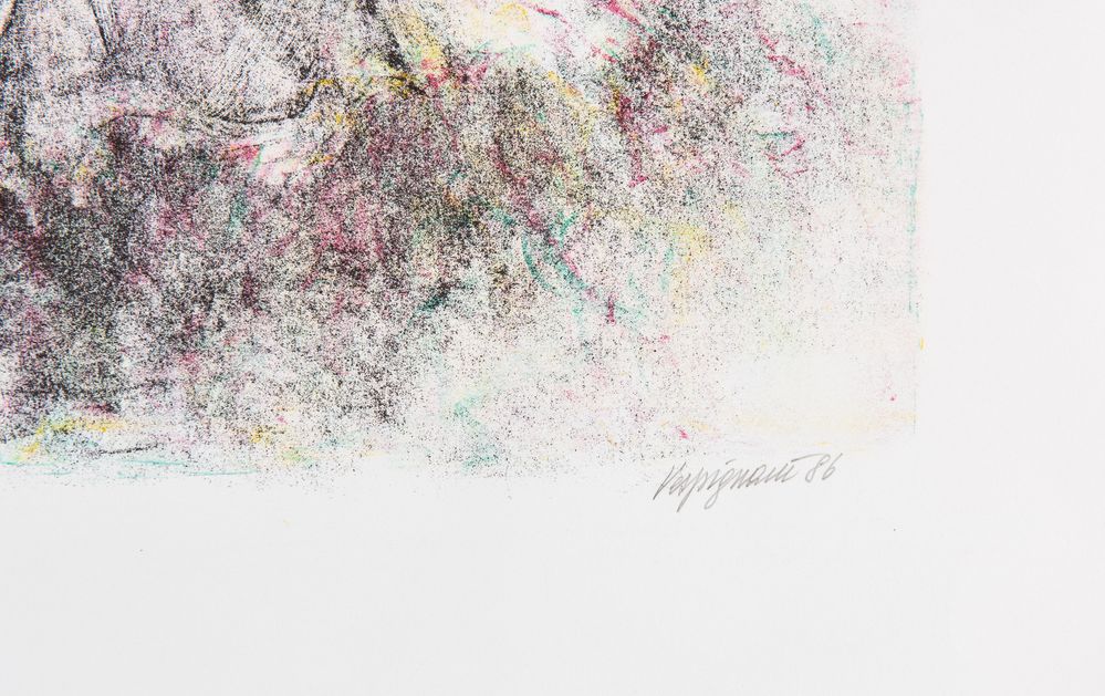 RENZO VESPIGNANI (Roma 1924 – 2001) "Senza titolo". Litografia a colori su carta. Cm 56,5x76. Opera firmata e datata in basso a destra Vespignani 86. Reca numeri di tiratura in basso a sinistra 137/150. Reca timbro in basso a sinistra L'Acquaforte stamperia d'arte a Roma e firma Renzo Vespignani.