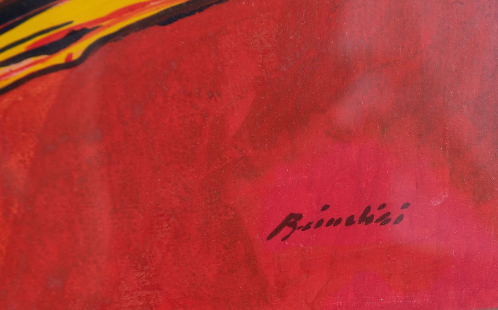 REMO BRINDISI (Roma 1918 - Lido di Spina 1996) "Pastorale", 1975. Olio su tela. Cm 60x50. Opera firmata in basso a destra Brindisi. Al retro reca etichetta Studio G.R. Al retro opera autenticata dall'artista in data 1981.