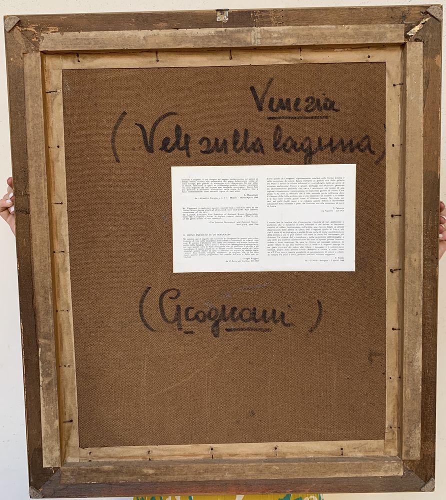 CORRADO CICOGNANI (Bologna 1919 - 1992) "Vele sulla laguna". Olio su faesite....