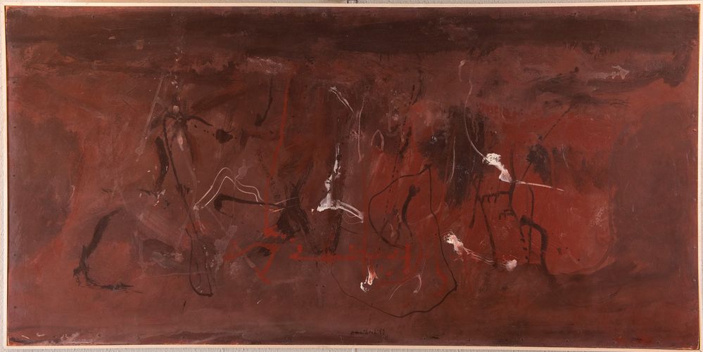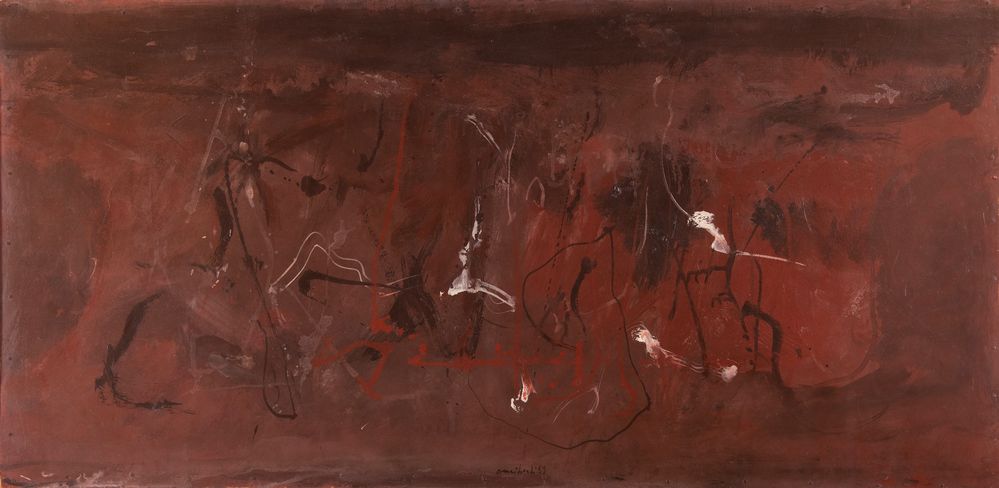 PIRRO CUNIBERTI (Sala Bolognese 1923 – Bologna 2016) “Senza titolo”, 1959. Olio su tavola. Cm 50x100. Opera firmata e datata in basso al centro Cuniberti '59.
