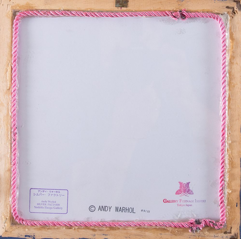 ANDY WARHOL (Pittsburgh 1928 – New York 1987) “Marilyn”. Serigrafia a colori su carta. Cm 25,5x25,5. Opera firmata in basso a destra Andy Warhol. Al retro reca timbri: C Andy Warhol; numeri di tiratura #9/15; Gallery Fujinagi Isshiki, Tokyo; Andy Warhol, Silver Factory, Yoshida Hanga Gallery.