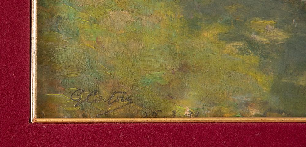 GUIDO CADORIN (Venezia 1892 - 1976) "Paesaggio". Olio su tavola. Cm 36,5x26,5. Opera firmata in basso a sinistra G. Cadorin.
