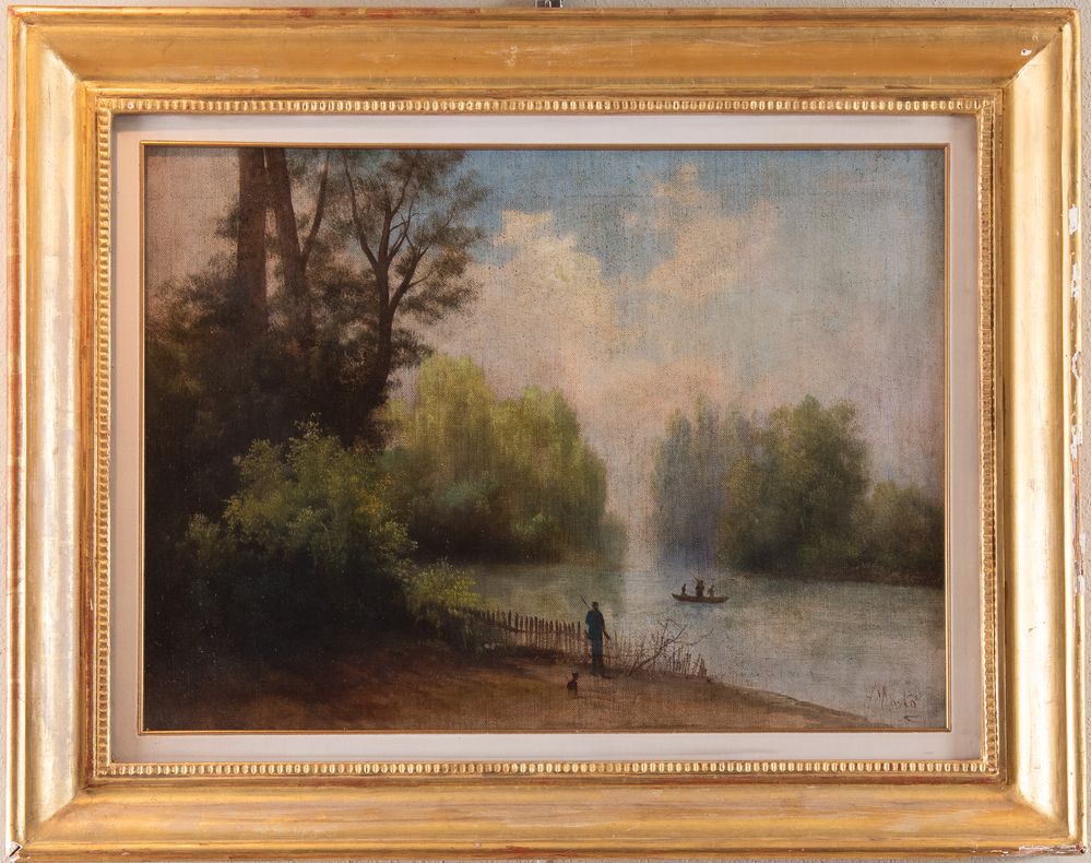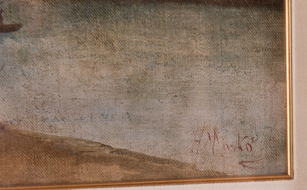 HENRY MARKO' (Firenze 1855 - Lavagna 1921) "Paesaggio". Olio su tela. Cm 49,5x65,5. Opera firmata in basso a destra H. Markò.