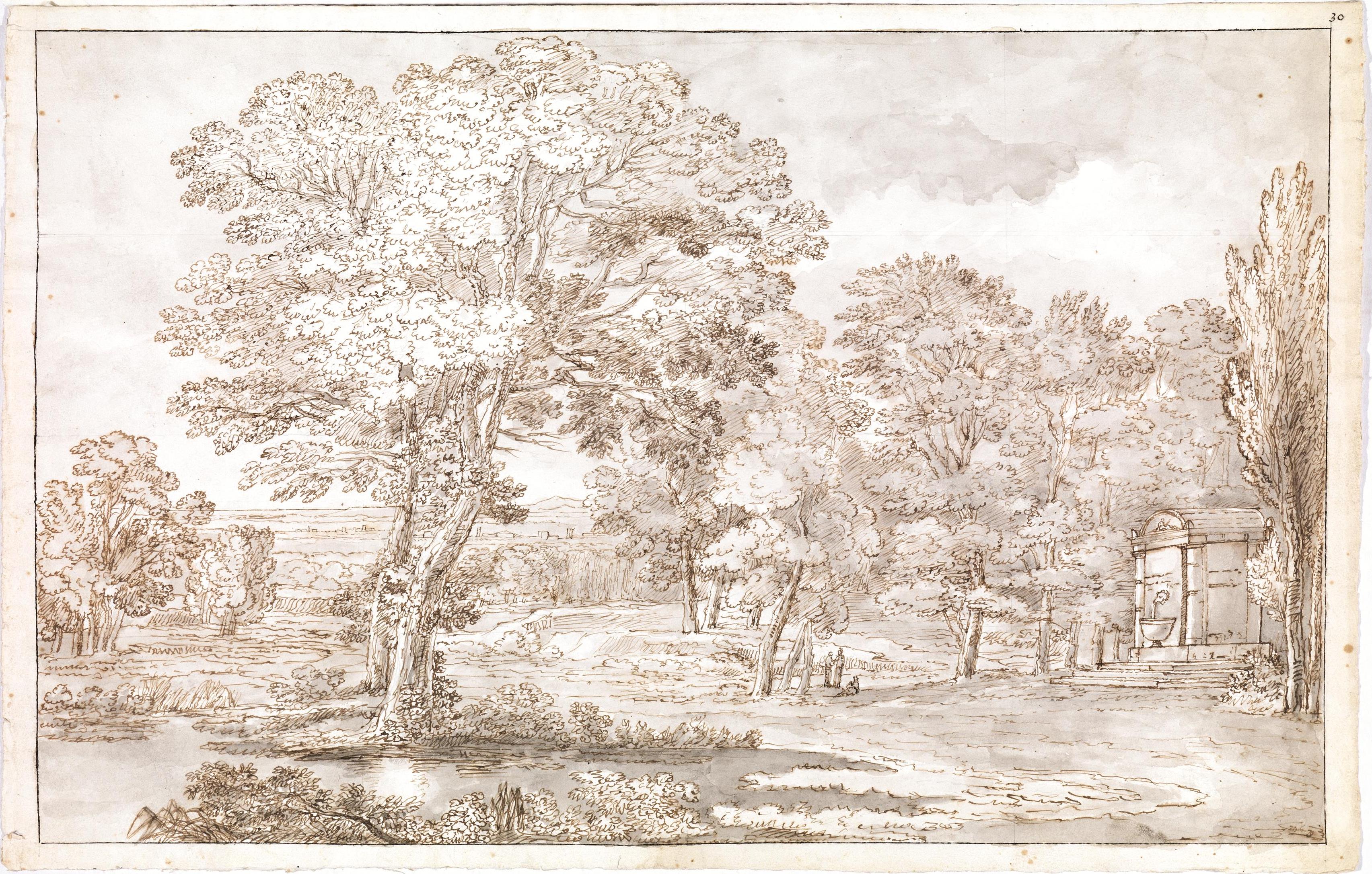 Savini, Giacomo(Bologna 1768 - 1848 ca.)PAESAGGIO BOSCHIVO CON FONTANAPenna e...
