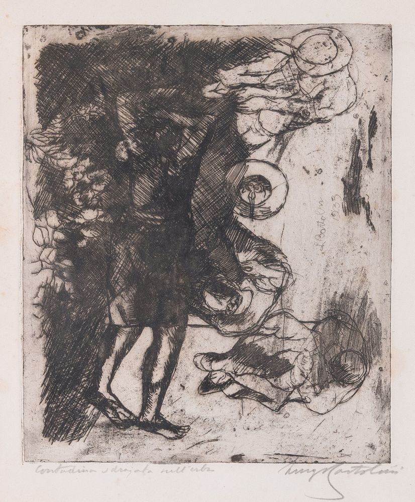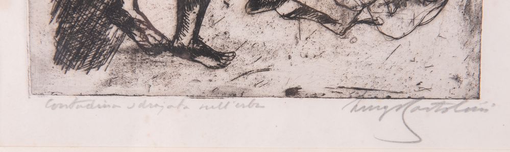 LUIGI BARTOLINI (Cupramontana 1892 - Roma 1963) "Contadina sdraiata sull'erba", 1933. Acquaforte su carta. Lastra: mm 245x206. Opera firmata in basso a destra Luigi Bartolini. Opera intitolata in basso a sinistra Contadina sdraiata sull'erba. Opera firmata e datata in stampa L. Bartolini 1933.