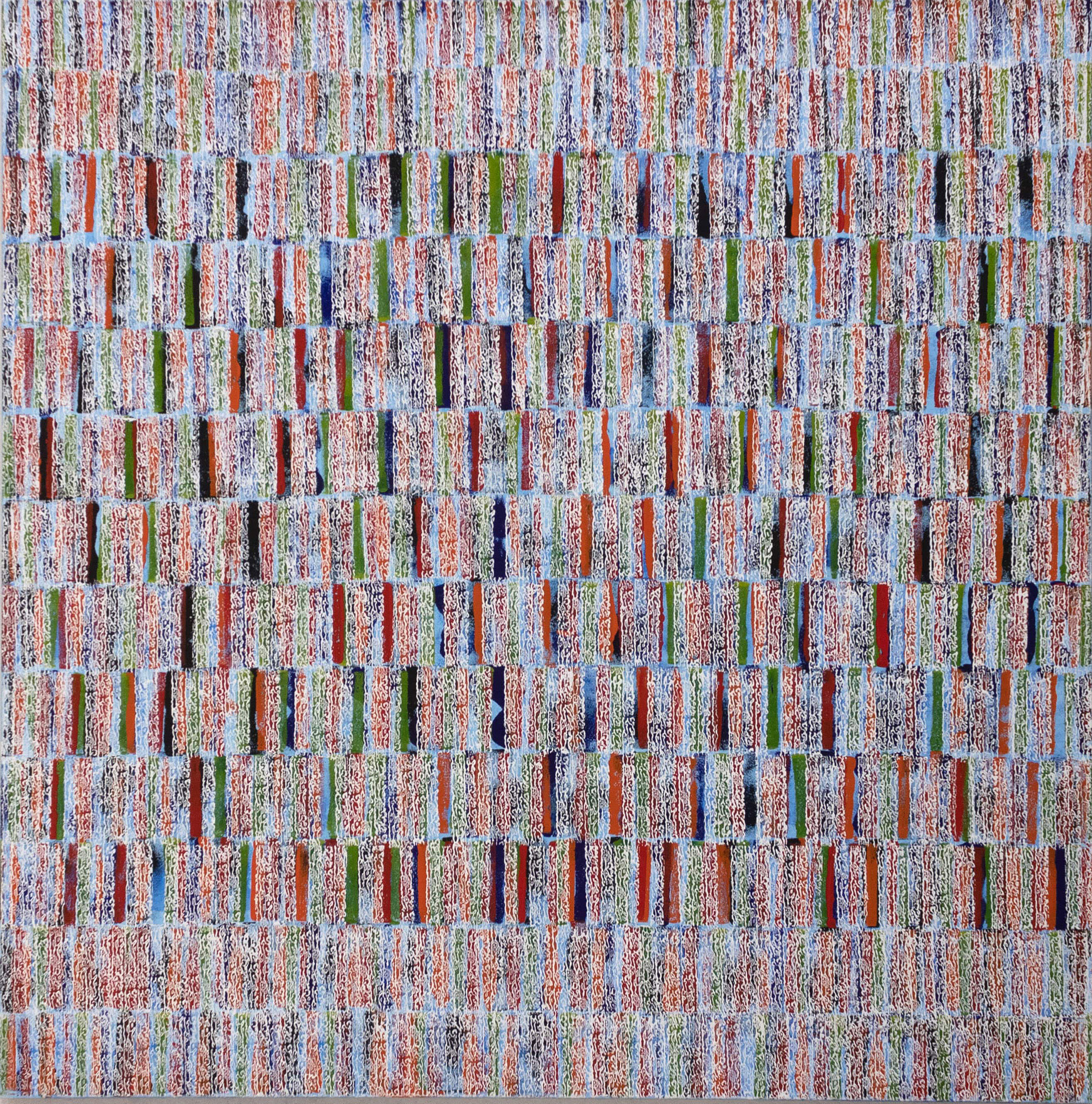Fabrizio Tedeschi, Totem, 2019, tecnica mista su tela, cm 150x150. Autentica a cura dell'artista. Opera pubblicata su catalogo'Fabrizio Tedeschi. Contemporary totem' pag. 97 ed esposta alla Biennale Venezia 2019.