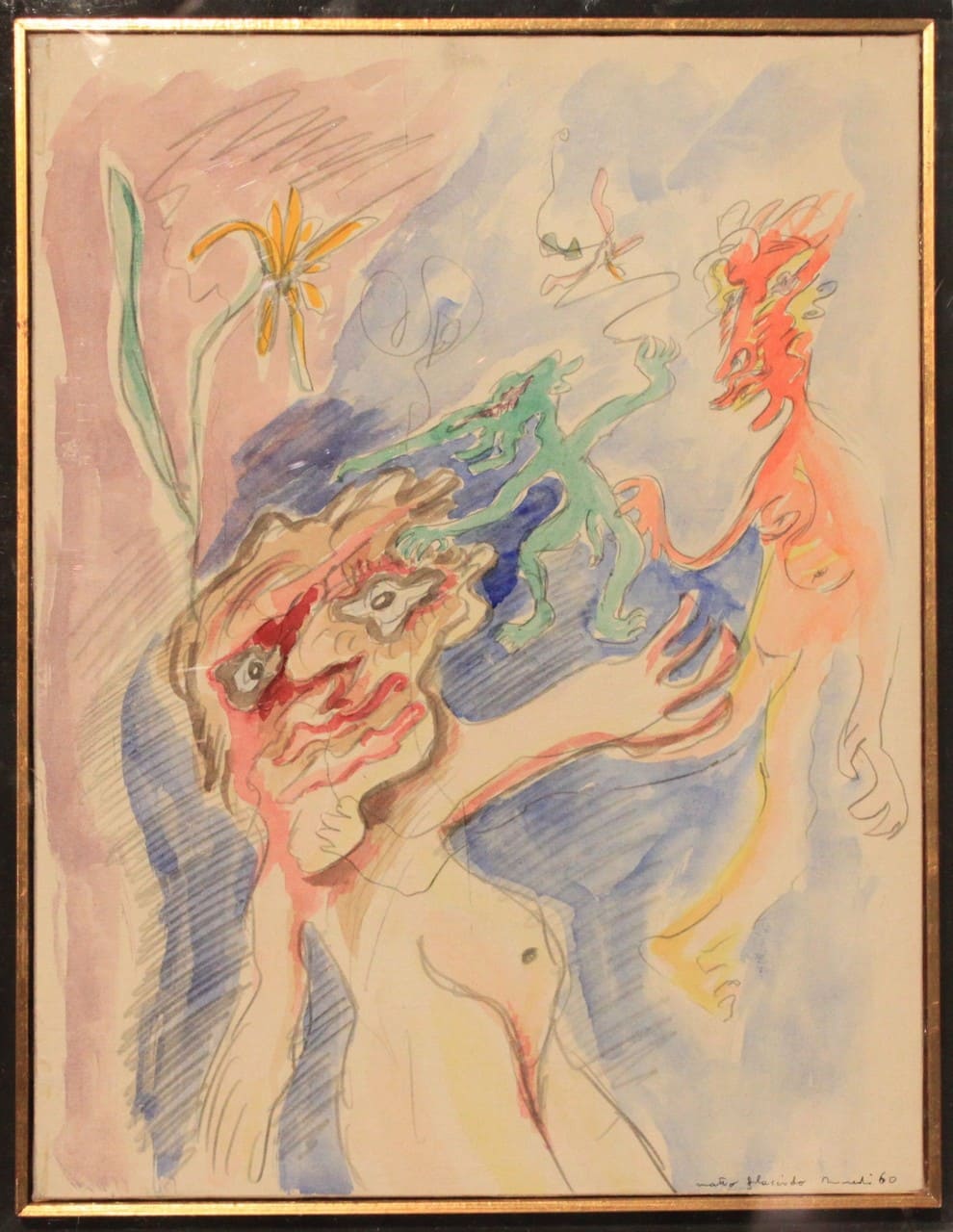 Tancredi Parmeggiani, Il matto flaccido, 1960, tecnica mista su carta, cm 39x30.