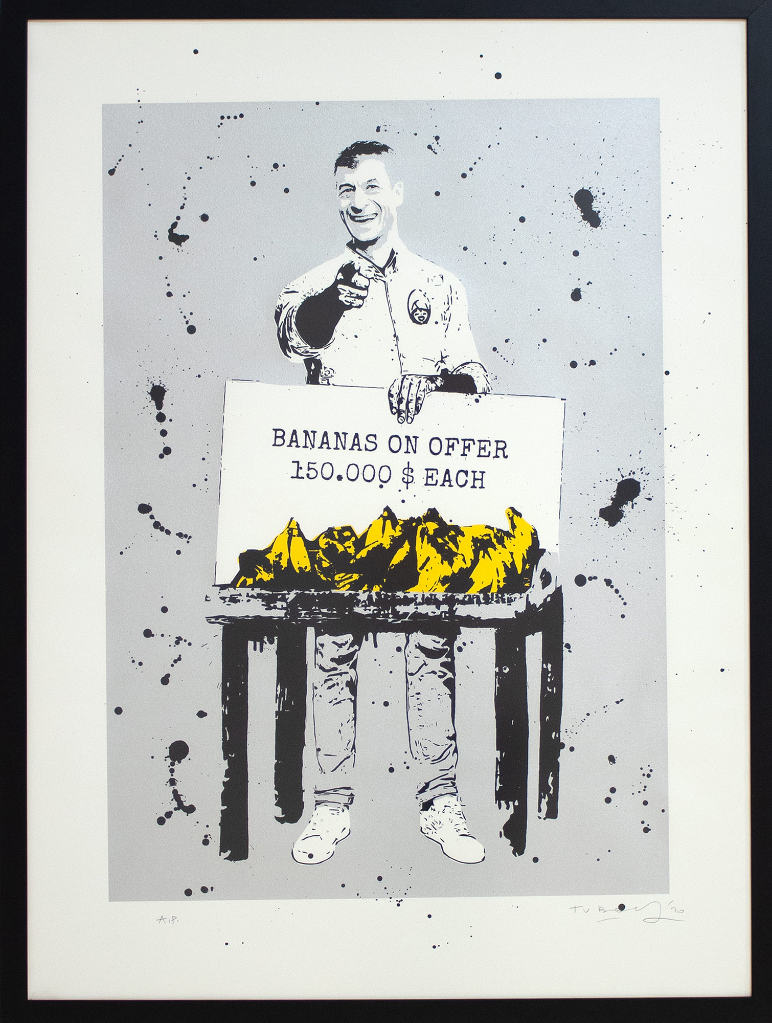 TV Boy, Cattelan’s Bananas Unique A.P., 2020, serigrafia- pezzo unico, cm 107x79. Autentica a cura dell'artista.