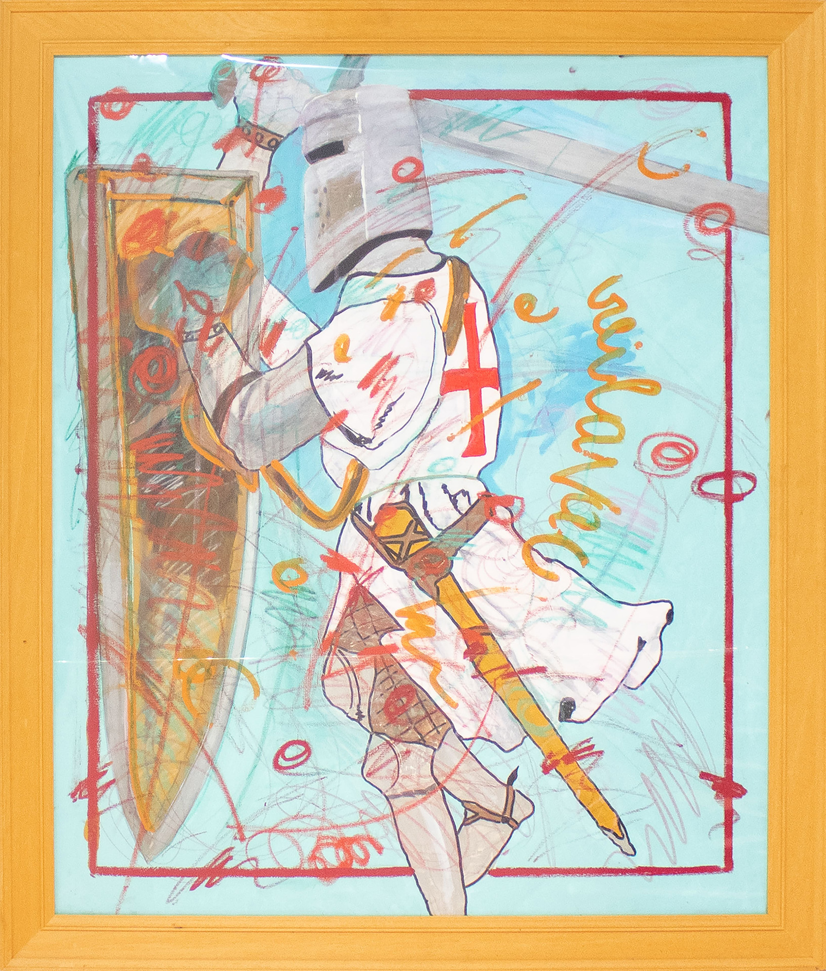 Enrico Manera, I cavalieri, 1996, tecnica mista su tela, cm 120x100. Autentica a cura dell'Archivio Enrico Manera.