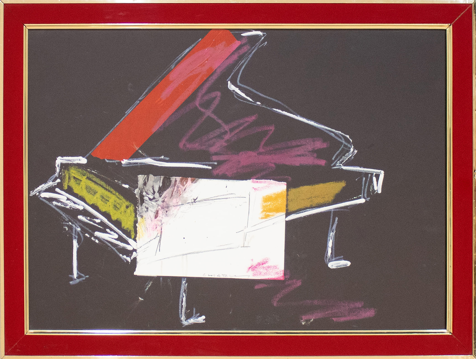 Giuseppe Chiari, Pianoforte, 2003, tecnica mista su carta, cm 50x70. Autentica a cura dell'artista.