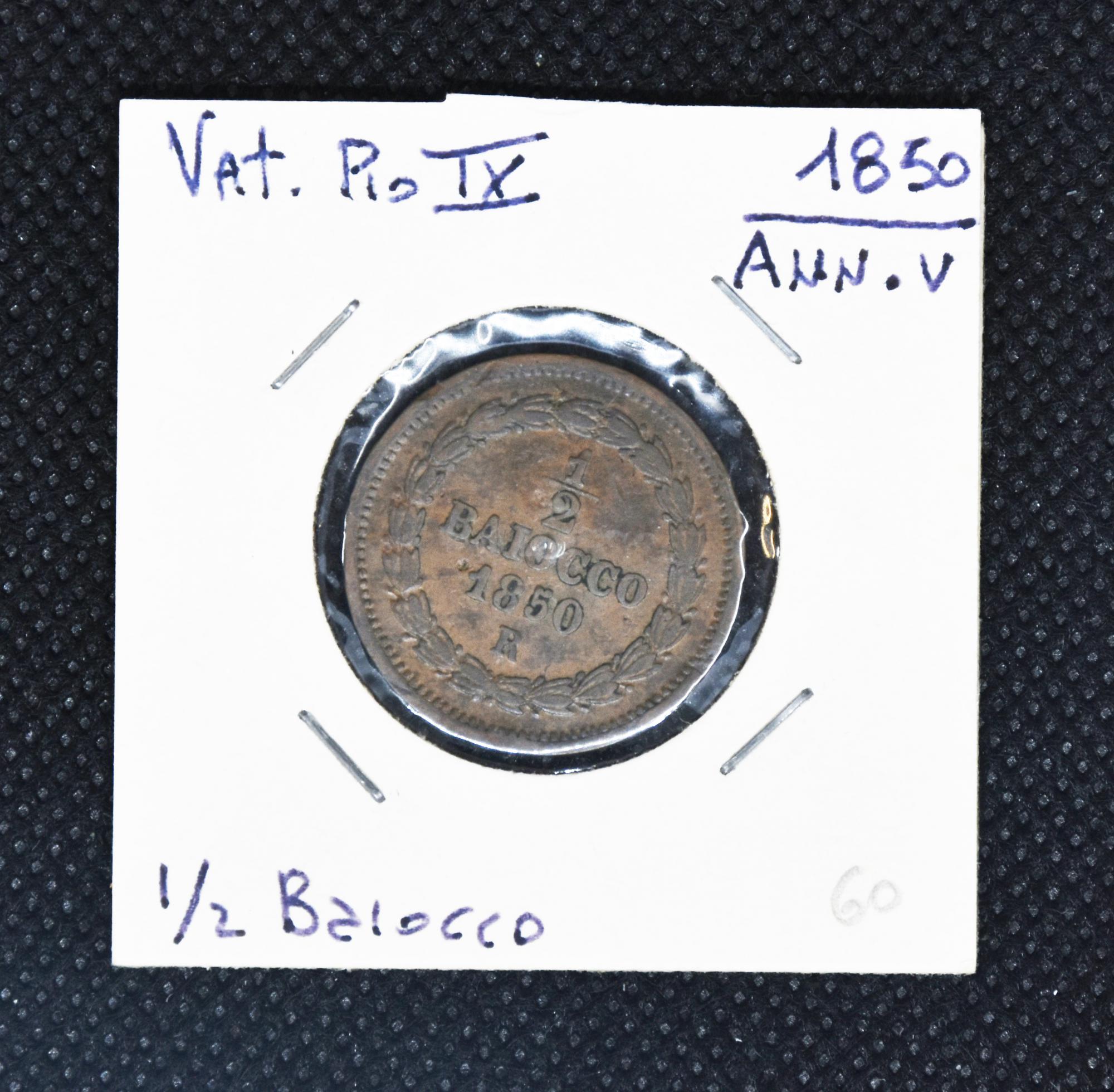 1/2 BAIOCCO STATO PONTIFICIO 1850 Papa Pio IX (Anno V)