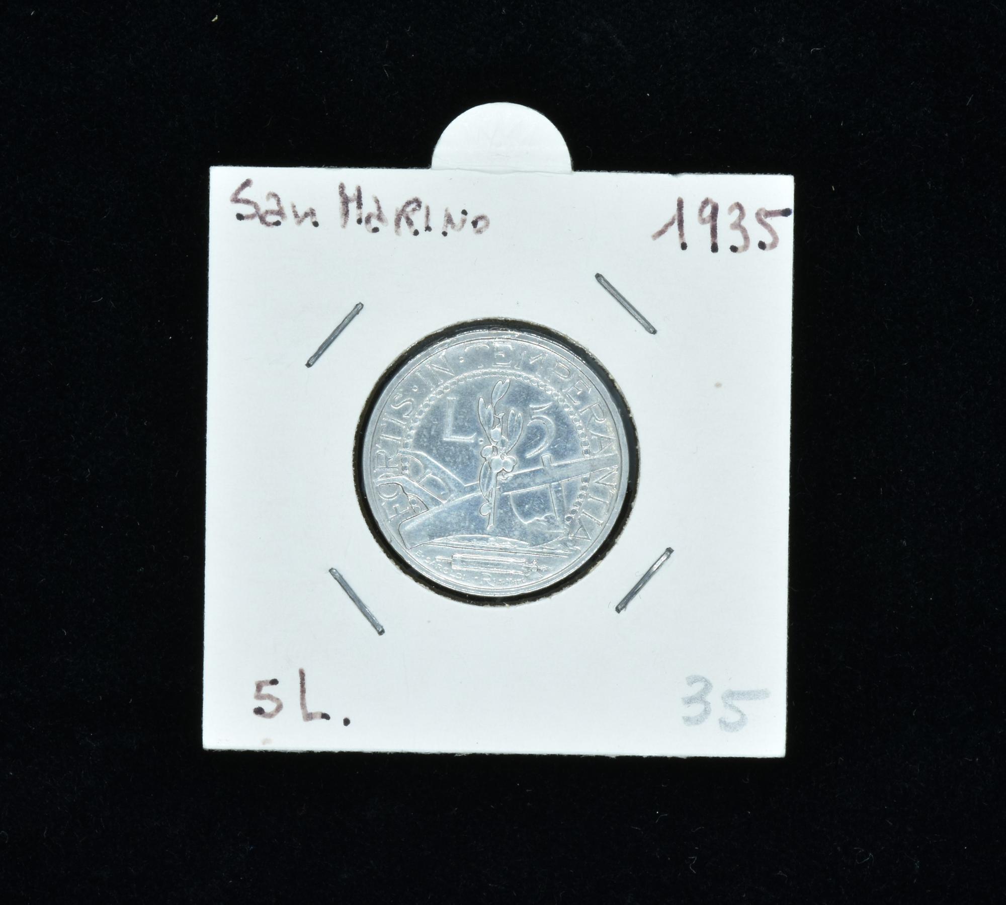 Previous Lot 46 Next Livebid - Via Tiziano Vecellio 34/D, 10126 Torino MONETE DEL MONDO E ITALIANE. REGNO D’ITALIA, REPUBBLICA, S.M.O.M. E STATO PONTIFICIO Sessione Unica Tuesday 7 September 2021 hours 21:00 (UTC +01:00) 5 LIRE SAN MARINO 1935 5 LIRE SAN MARINO 1935