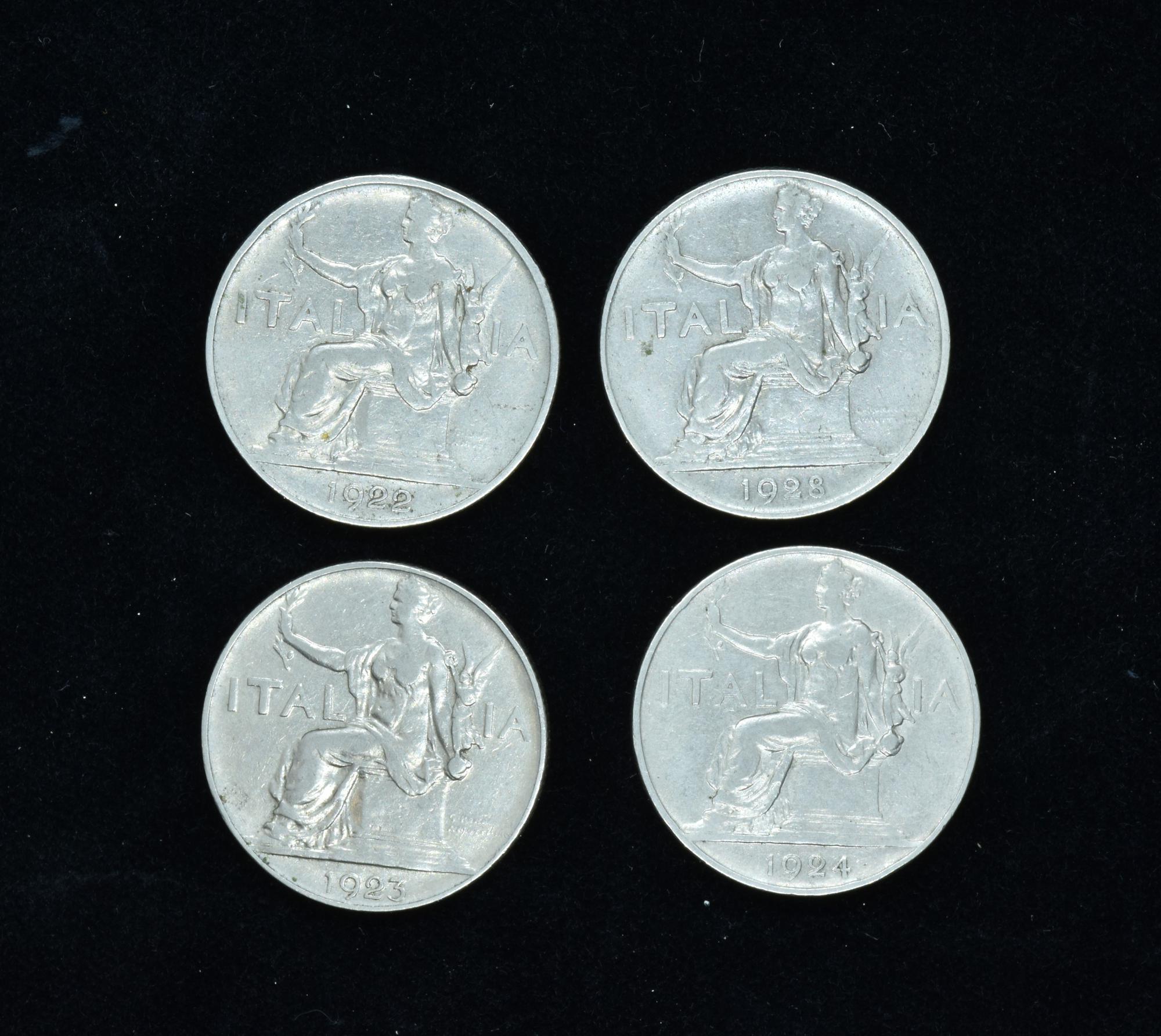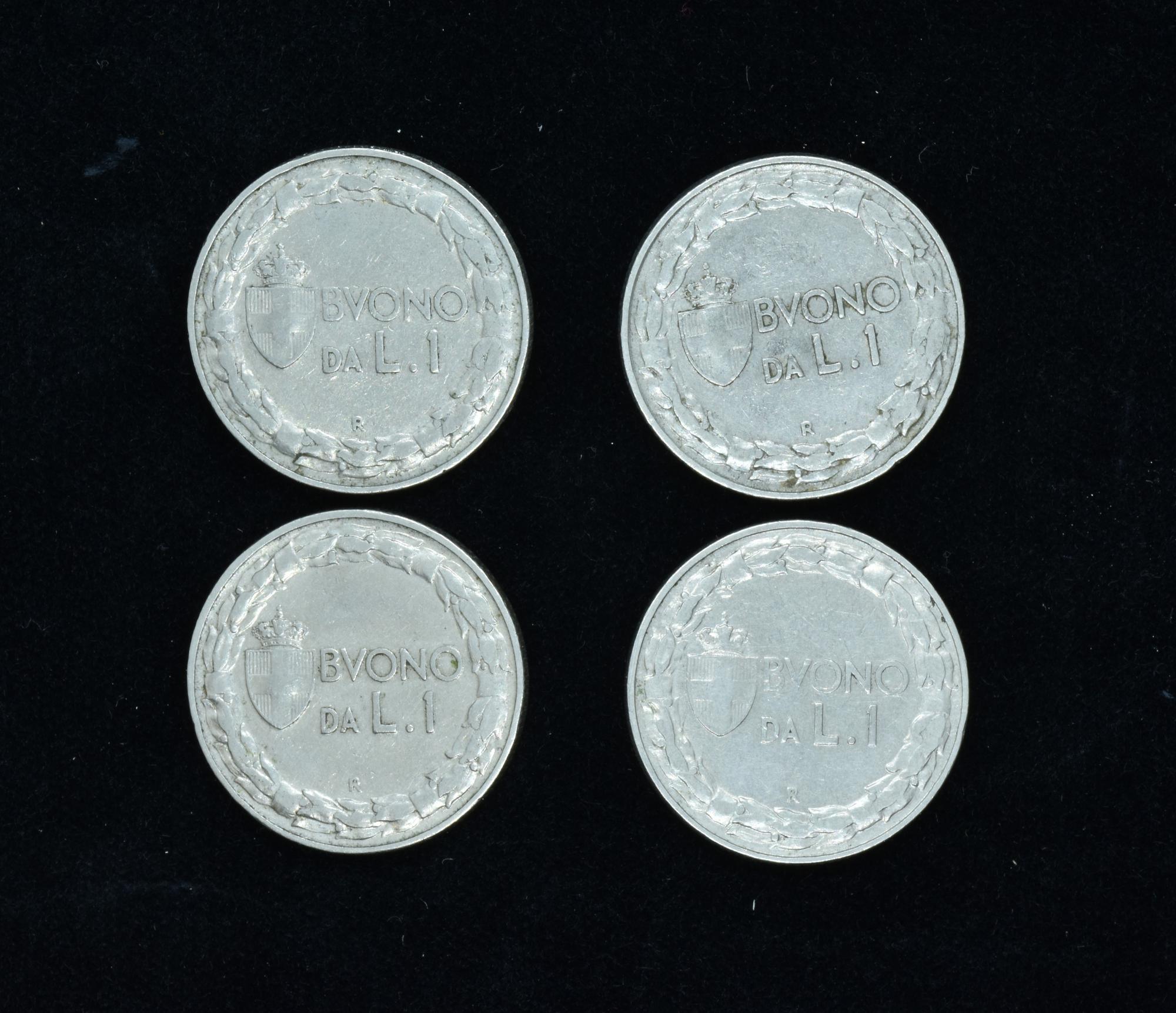 LOTTO DI 4 MONETE REGNO D'ITALIA composto da: buono da una lira 1922 buono da...