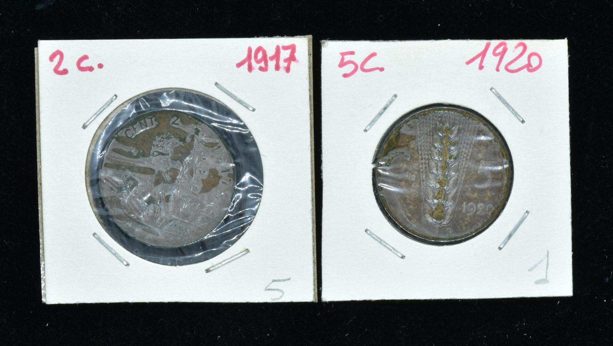 LOTTO DI DUE MONETE REGNO D'ITALIA composto da: 2 centesimi 1917 5 centesimi...