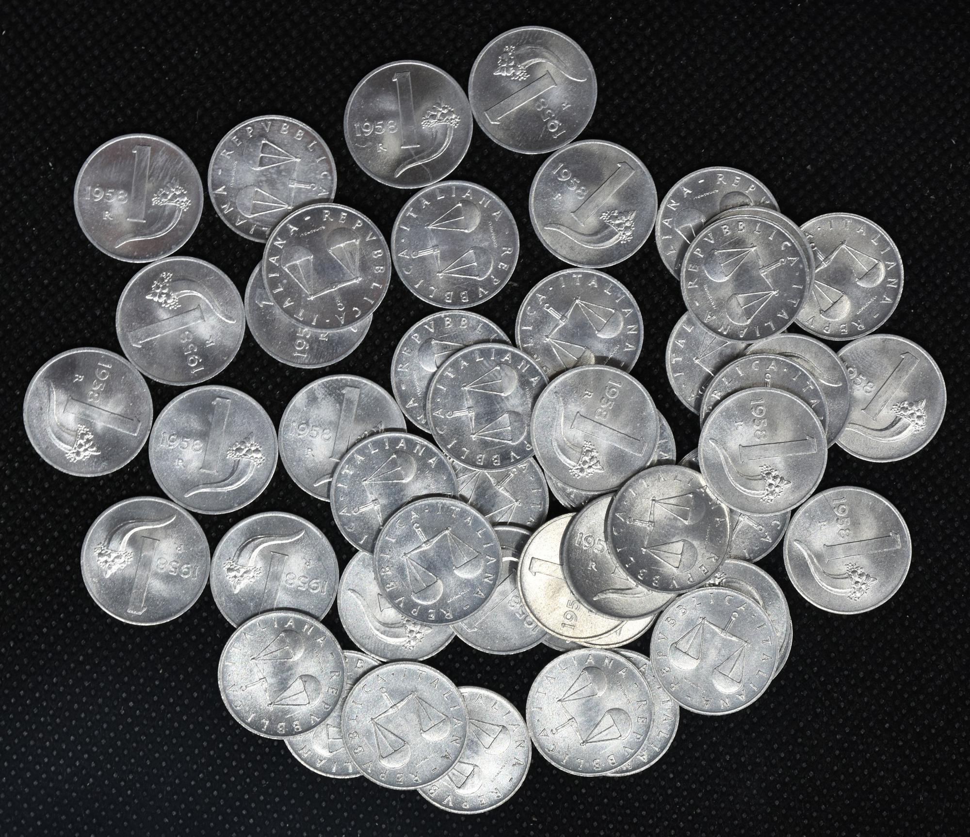 LOTTO DI 50 MONETE REPUBBLICA ITALIANA da 1 lira 1958 F.D.C.